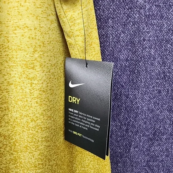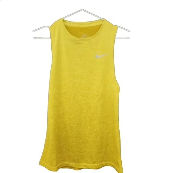 This Nike Dri-FIT tank top is perfect for workouts or casual wear! It's a slim fit and comes in a vibrant yellow colour. The size is XS. The tag indicates that Nike DRY fabrics move sweat away from your skin for quicker evaporation, helping you stay dry, comfortable and focused on the task at hand, thanks to Dri-FIT technology