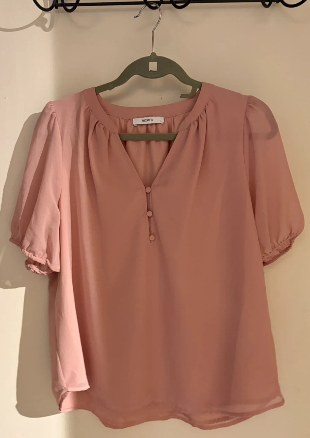 Buy & SellPink BlousePink Blouse$10It's a lovely pink blouse with a v-neck and button detail. The sleeves are puffed and airy. Made from a lightweight fabric.ConditionGoodSizeLargeBrandRicki’sWHERE TO MEETCheck LocationView MapSELLERverifiedAllieOliver620 reviews1 chats·1 favorites·17 viewsSEND CHAT TO SELLERHi Allie! I’m interested in your listing.Hi Allie! I’m interested in your listing.Get the Karrot app to chatSign In to chat