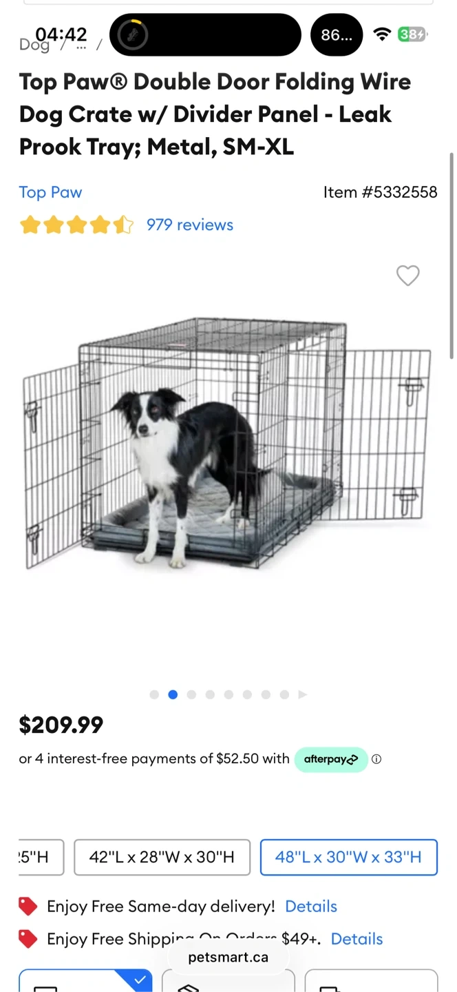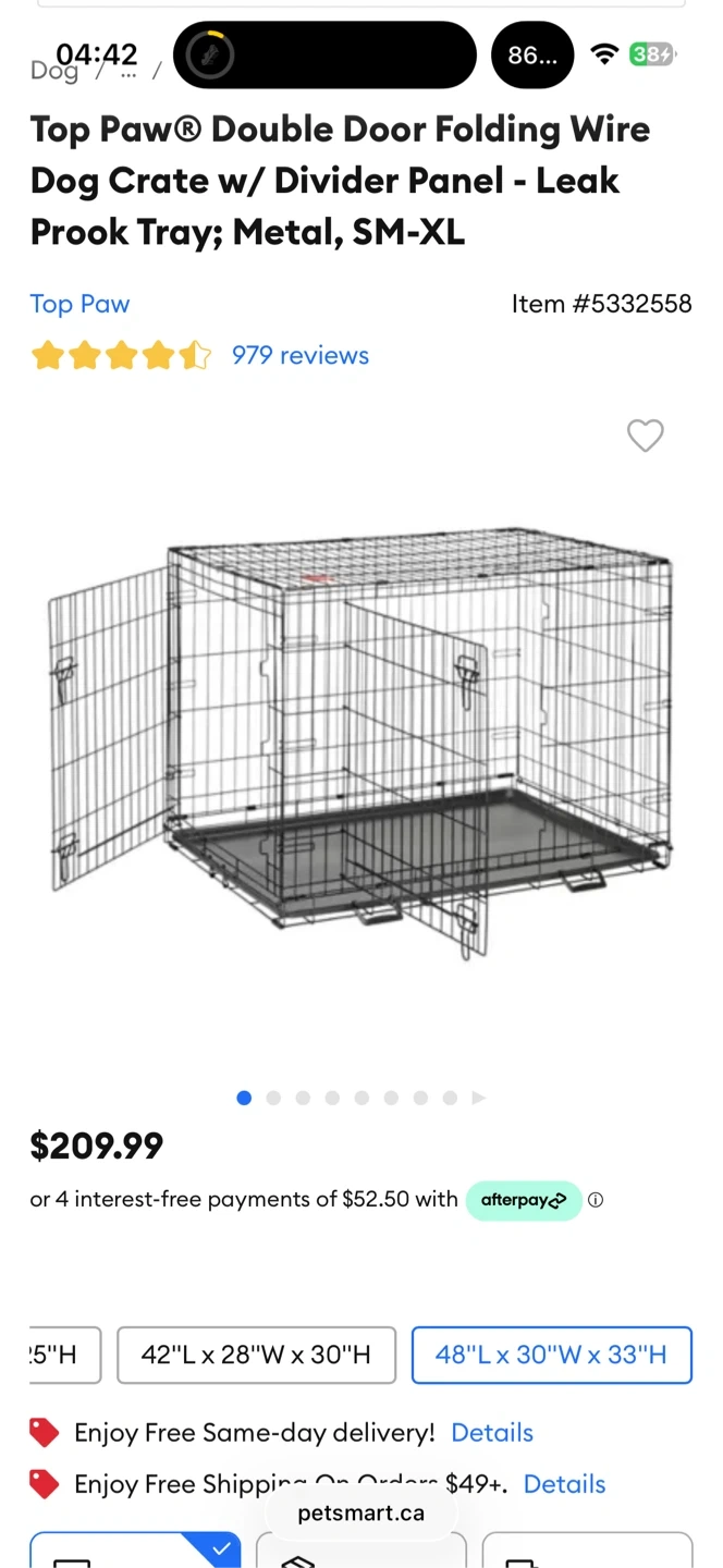 https://www.petsmart.ca/dog/crates-gates-and-containment/crates-and-kennels/top-paw-double-door-folding-wire-dog-crate-w-divider-panel---leak-prook-tray-metal-sm-xl-5298863.html?gclsrc=aw.ds&gad_source=1&gad_campaignid=19815173688&gbraid=0AAAAAC2gTWLslO8tpNXJ1mhYNkziB1c2u&gclid=CjwKCAiAqprNBhB6EiwAMe3yhteezPVZgRieuDpM1MiSqHGHDffmdsj9dHDdrfHoEkWE9CXjO-o4YBoCBMwQAvD_BwE&redirected=true