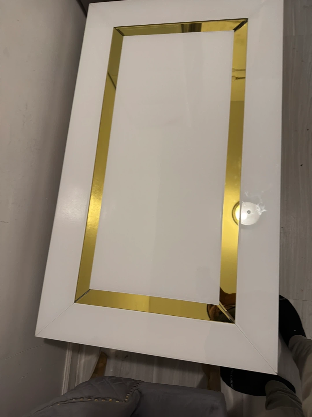 Selling a modern coffee table with a sleek white finish and elegant gold accents. It's in great condition and would be a stylish addition to any living room