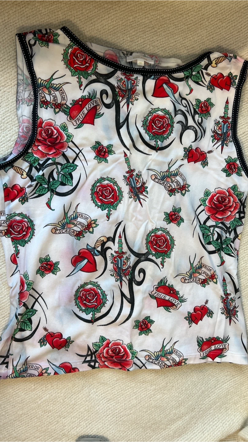 Escada Graphic Rose & Heart Print Tank Top Size 40