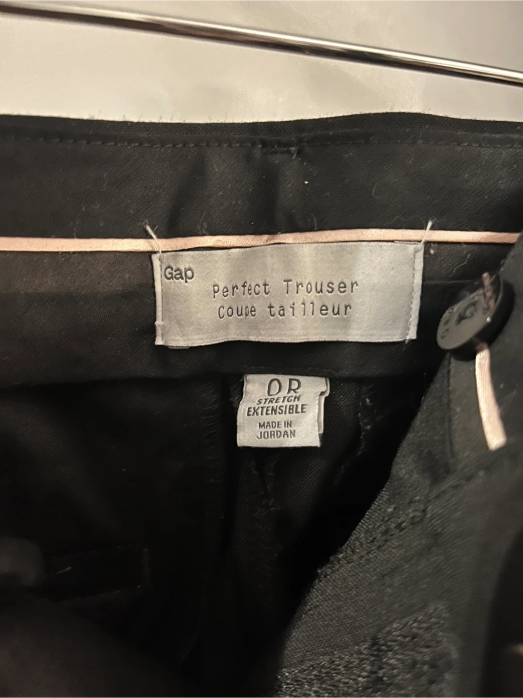 Gap Perfect Trouser women's pants in black. Stretch extensible material. Made in Jordan.