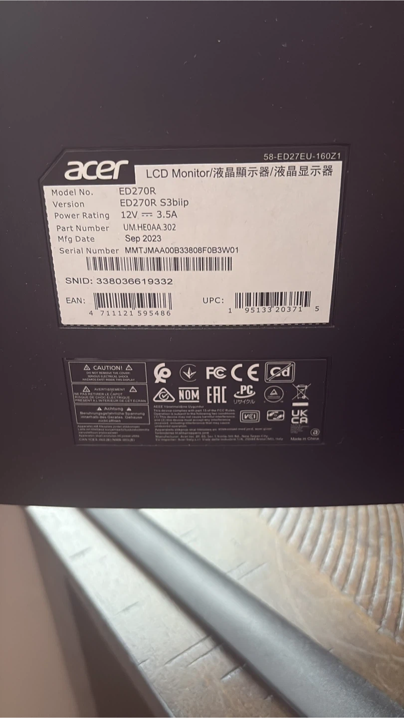 Selling an Acer ED270R curved LCD monitor. It's in great condition and ready for a new setup! This monitor offers an immersive viewing experience with its curved design.