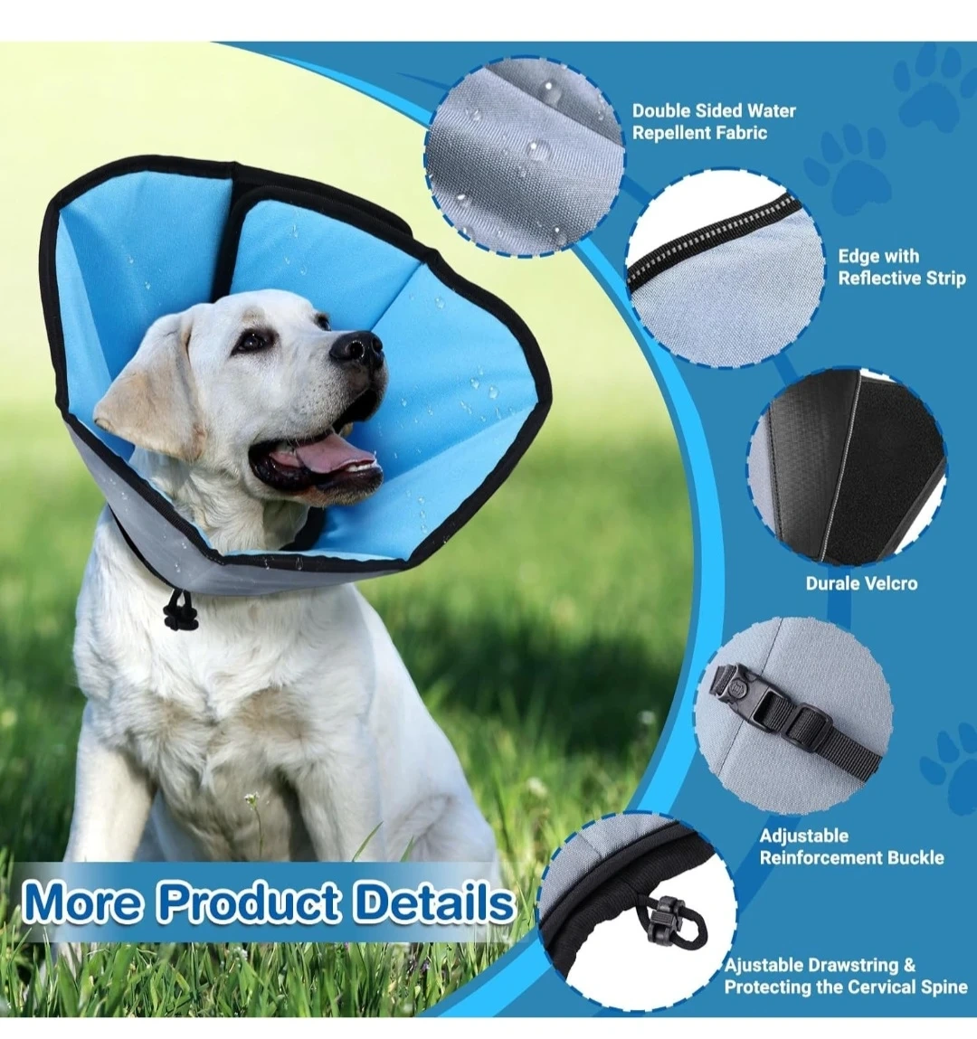 This is an extra-long, adjustable comfy dog Elizabethan pet collar cone, perfect for large dogs! It's designed to be anti-lick and protective for wounds.