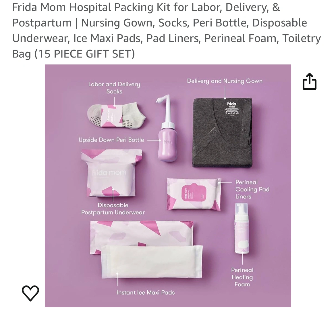 NEW MOM MUST-HAVES Kit for labor + delivery + postnatal overnight recovery after birth, includes :