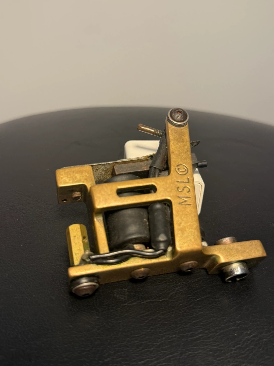 This is an MSLO hybrid tattoo machine in a bronze finish. It's designed for shading and colouring. It comes with high resolution magnetic coils and a split collet for fast tube changing. Approx. 245gr.
