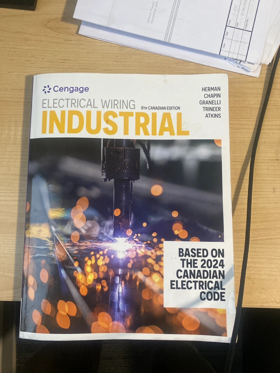 Selling a copy of Cengage Electrical Wiring Industrial, 8th Canadian Edition. It's based on the 2024 Canadian Electrical Code. Authors include Herman Chapin, Granelli, Trineer, and Atkins with prints