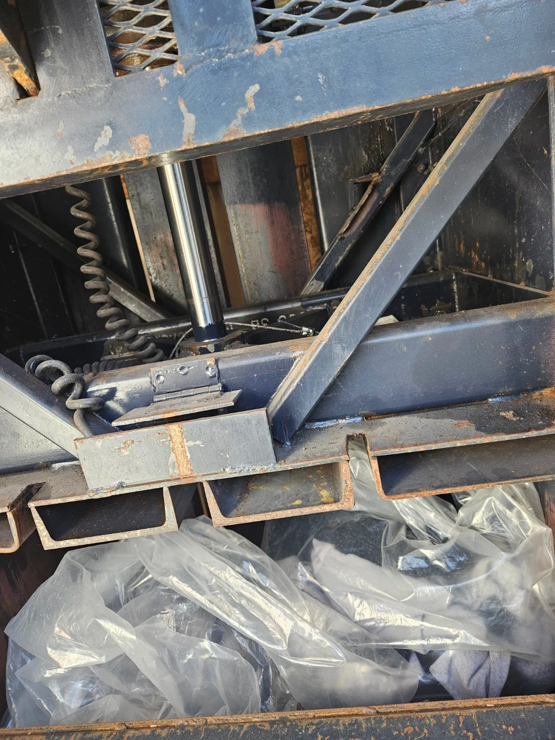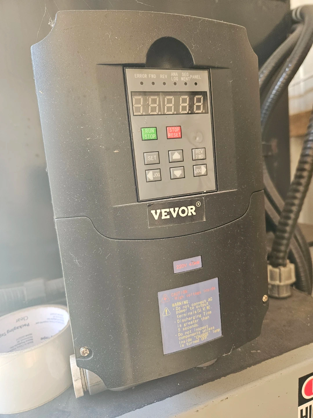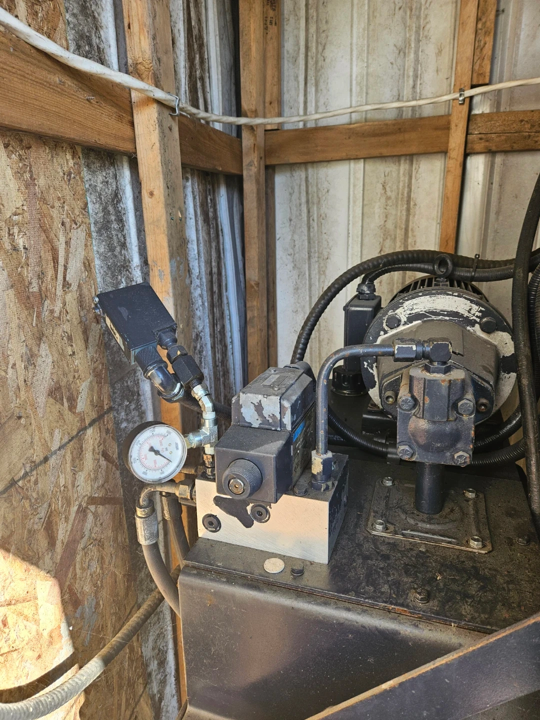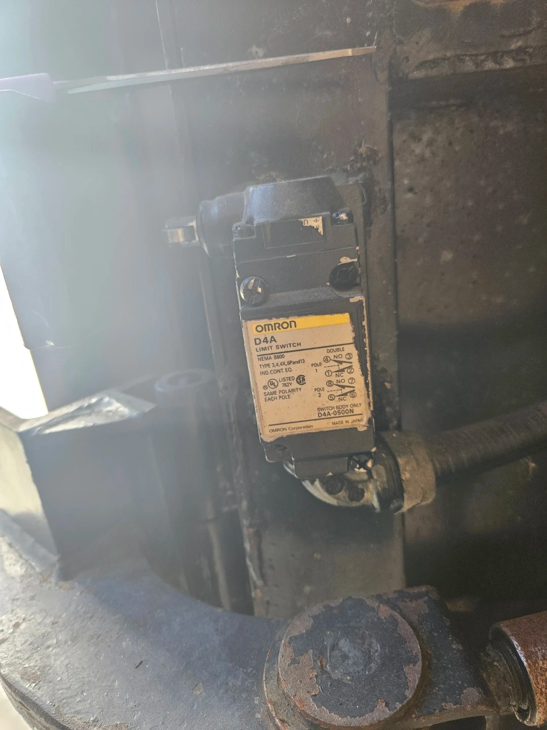 Heavy-duty baler for industrial use. Features a Vevor control panel and Omron limit switch. This equipment is designed for efficient waste management and material compression.