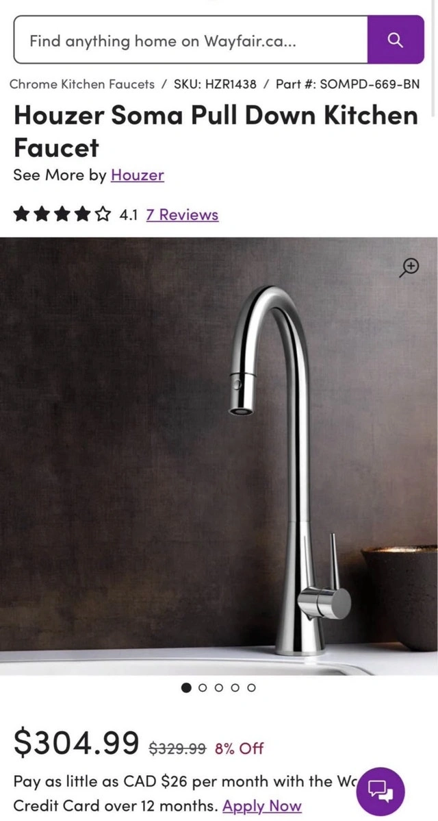 Add elegance and functionality to your kitchen with this Houzer Soma Pull-Down Kitchen Faucet. It combines modern curves with a timeless cone base for a refined look that complements any kitchen style. Features: Solid Brass Construction for durability. Ergonomic Pull-Down Spray with XtendHose that reaches beyond 20 inches for full sink coverage. Easy Maintenance with an AeroFlo removable aerator. Smart Design with 90° forward handle motion to prevent backsplash interference. Includes pull-down spray head. Brand new and unused, this faucet delivers both style and practicality — perfect for any modern kitchen upgrade.