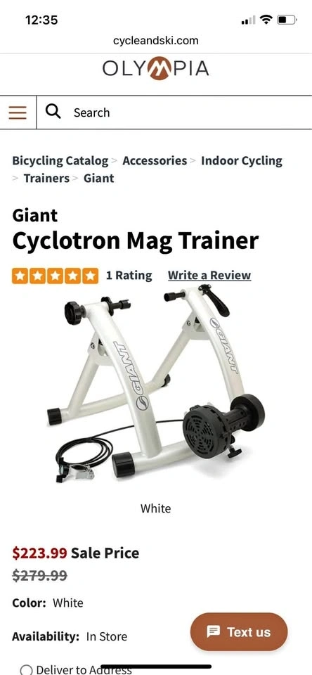 Buy & SellGiant Cyclotron Mag Bike TrainerGiant Cyclotron Mag Bike Trainer$125Giant Cyclotron Mag trainer, includes front wheel support and seat sweat cover. Smooth tire.WHERE TO MEETCheck LocationView MapSELLERMark McLarenRavenna100 reviews0 chats·0 favorites·2 viewsSEND CHAT TO SELLERHi Mark McLaren! I’m interested in your listing.Hi Mark McLaren! I’m interested in your listing.Get the Karrot app to chatSign In to chat