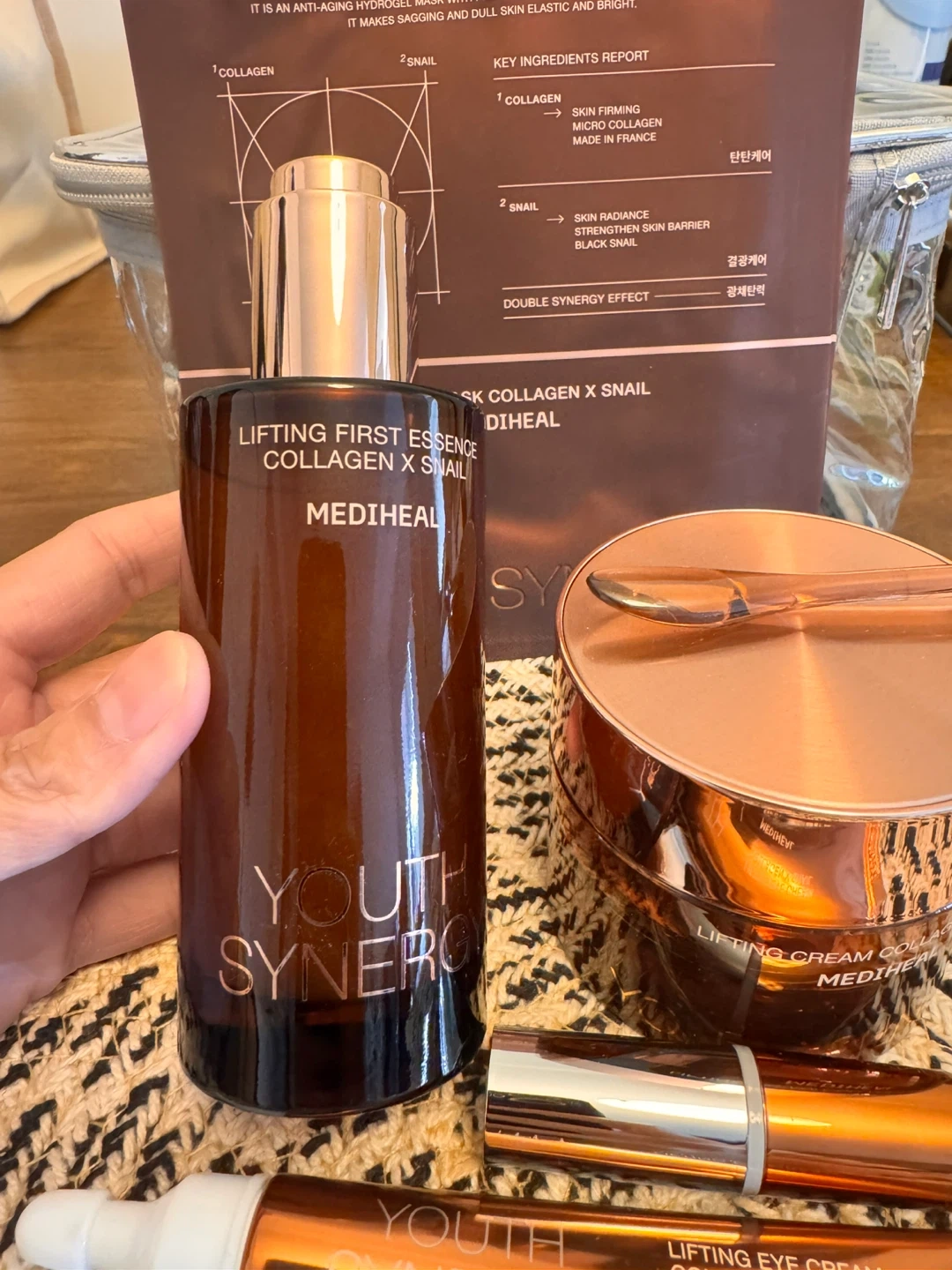 This set includes Mediheal Lifting First Essence, Lifting Cream, and Lifting Eye Cream. All products are formulated with collagen and snail extract. Great for improving skin firmness and radiance!