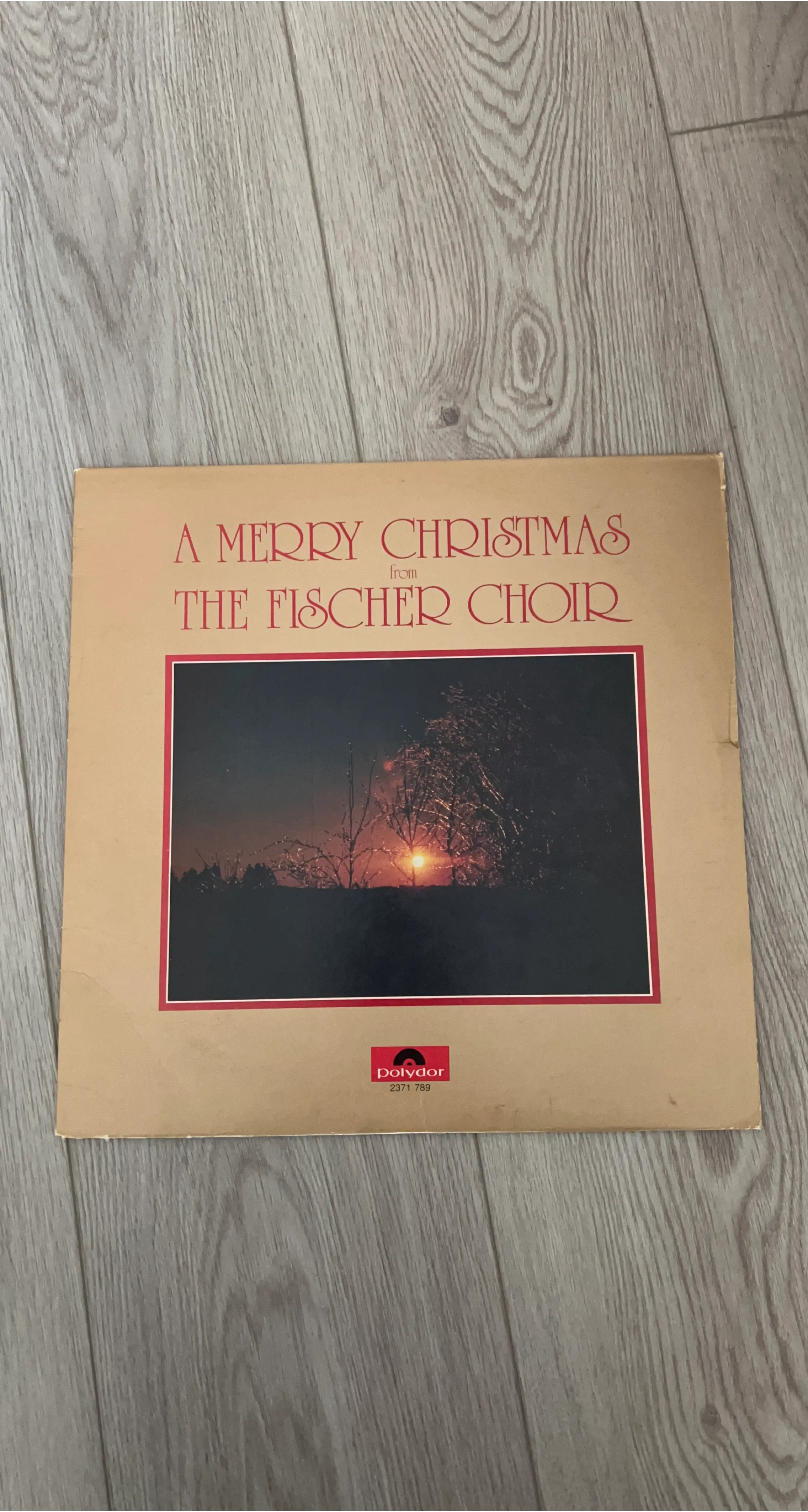This is a Polydor vinyl record featuring holiday music from The Fischer Choir. It's a classic Christmas album. The record includes tracks for festive listening.