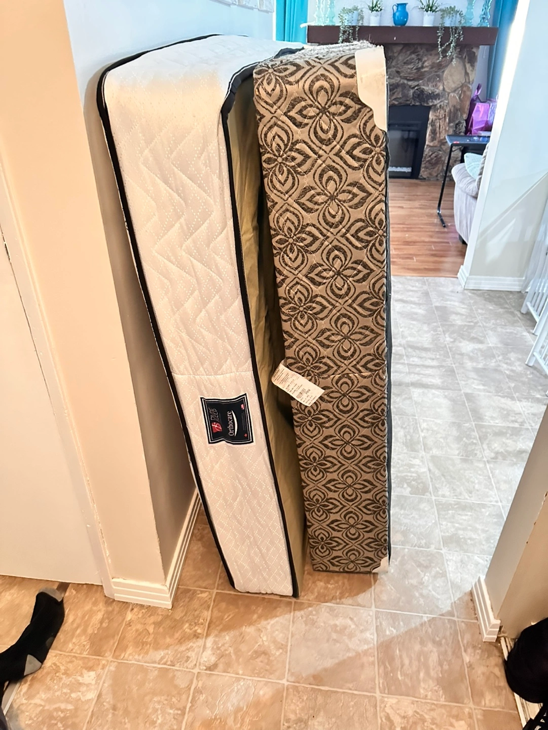Double mattress and headboard. Mattress features bamboo fabric and always had a mattress protector on it. Orthocare by Divine Sleep. Good condition.