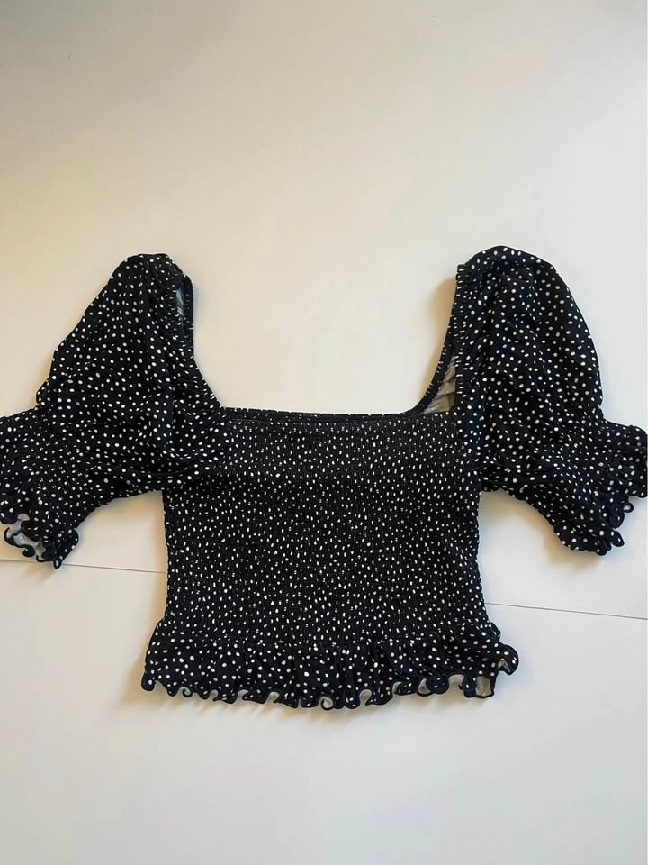 Black & White Puff Sleeve Shirt - S