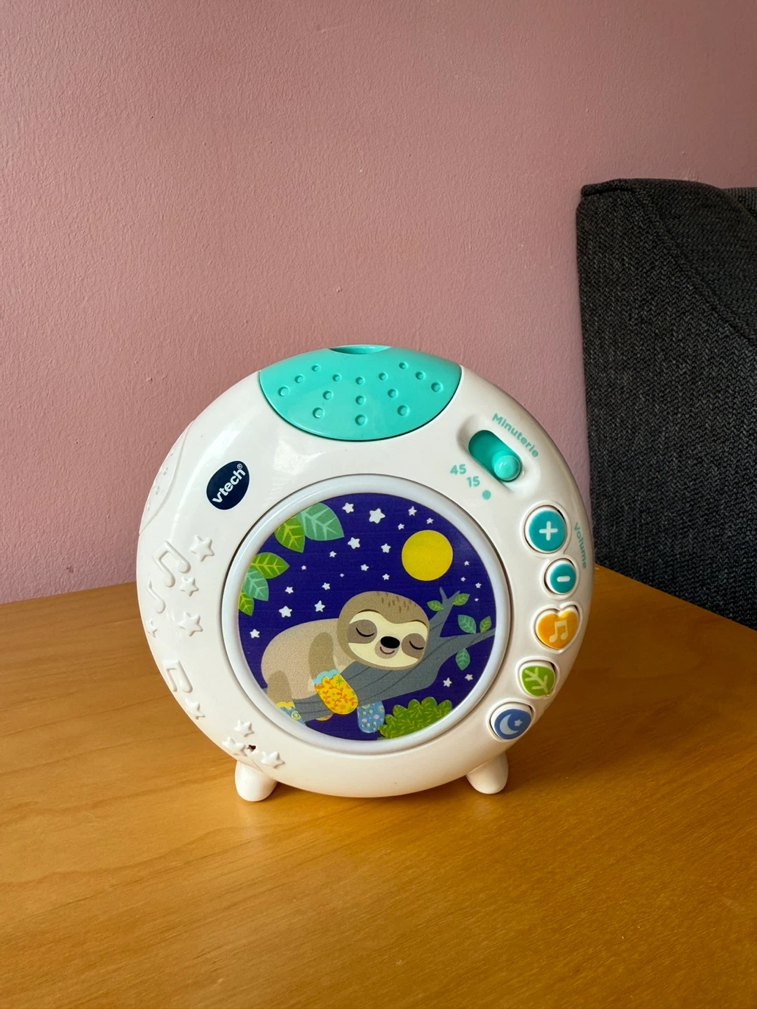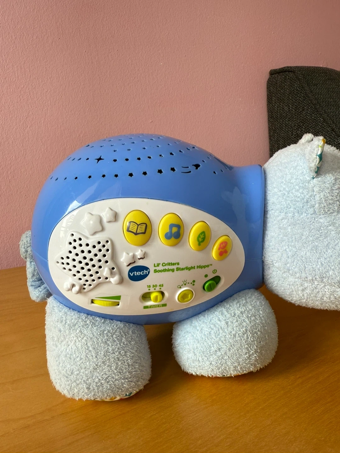 This VTech Lil Critters Soothing Starlight Hippo helps calm little ones. It projects stars onto the ceiling and plays soothing sounds. Features a 10, 20, or 30-minute timer.