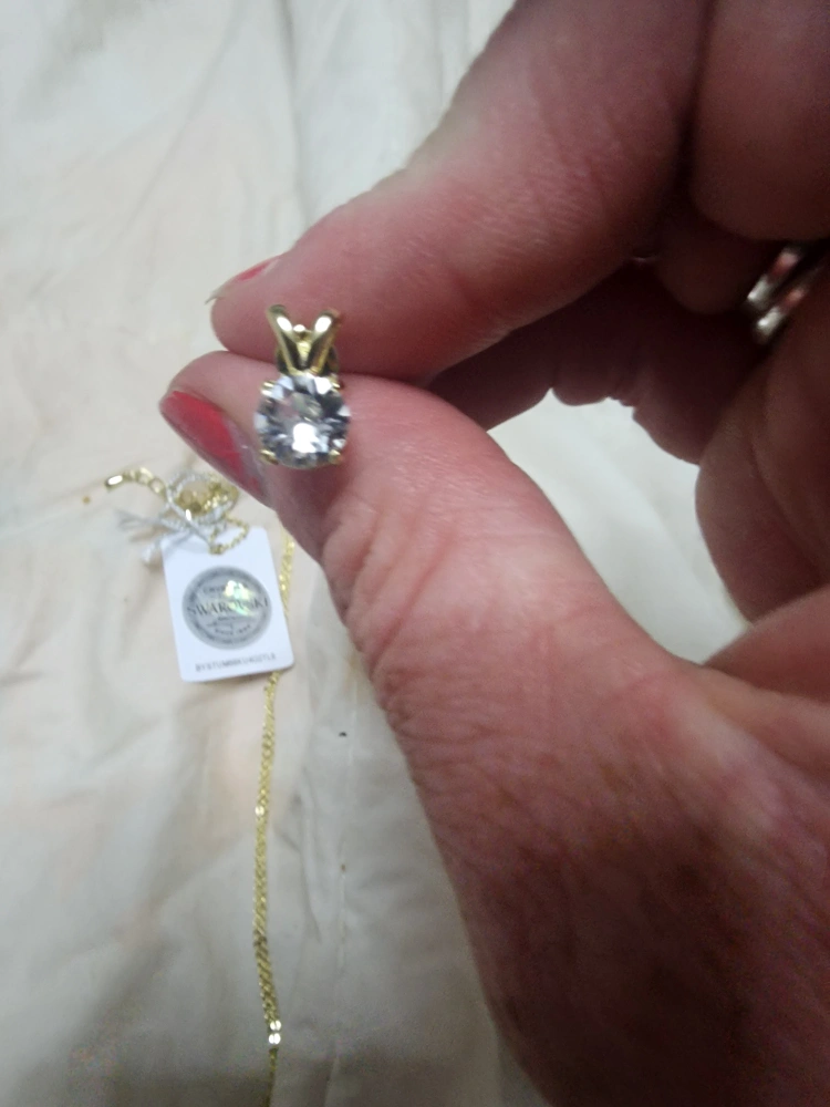 Selling a beautiful Swarovski pendant necklace with a gold chain. It's a lovely piece to add a touch of sparkle to any outfit! has earrings too