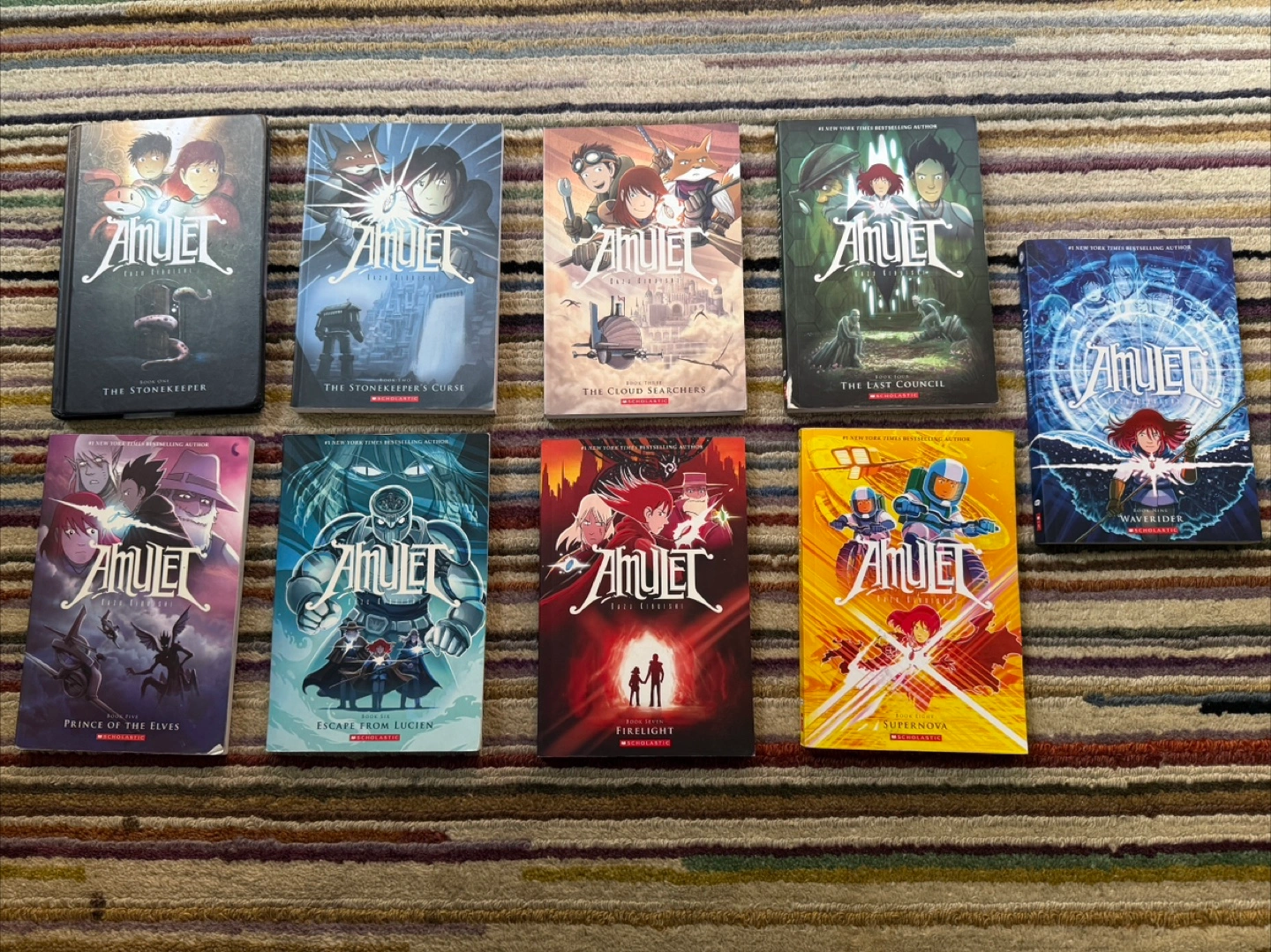 Selling the complete Amulet book series, books 1 through 9 by Kazu Kibuishi! This is a great series for young readers.