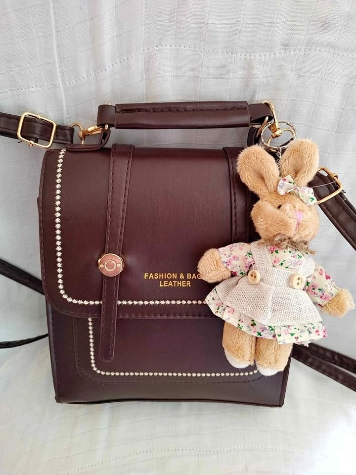 Vintage-looking Faux Leather Backpack w/ Rabbit Pendant