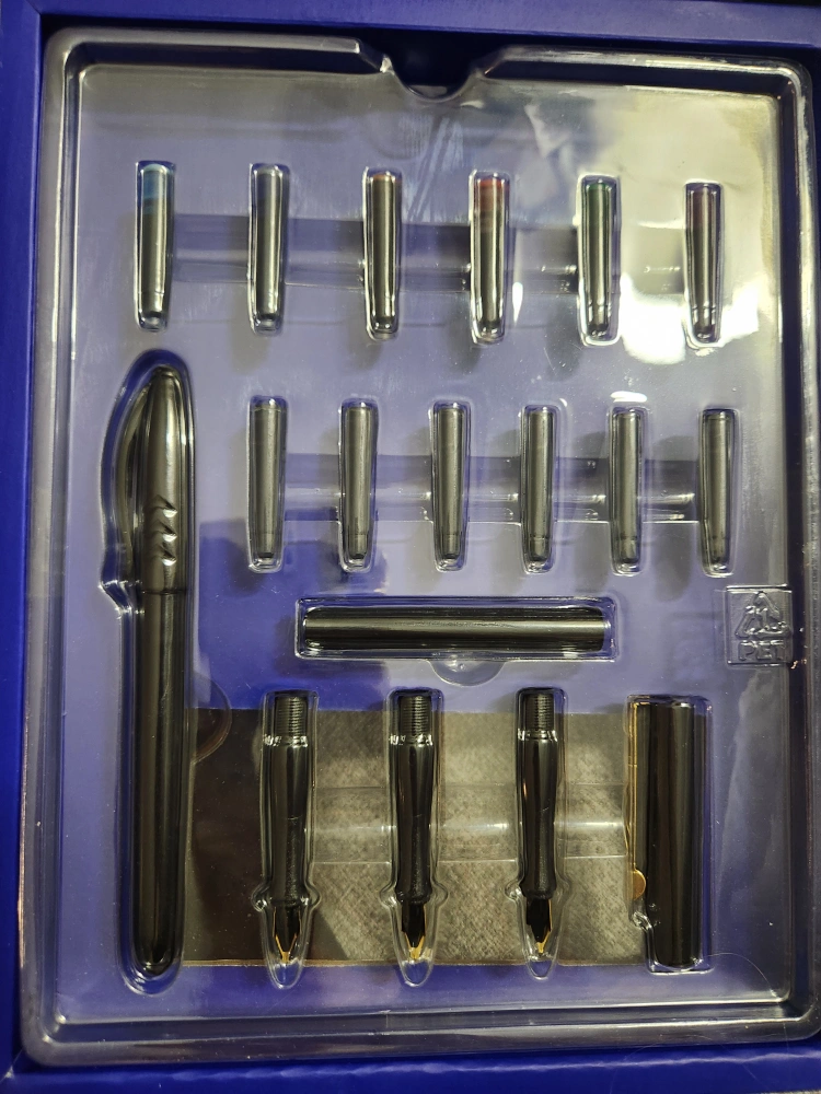 Complete lettering kit. Includes cartridge calligraphy pen, nibs, guide sheet, felt-tip pen, and 32-page project book. Perfect for beginners. English and Spanish instructions.