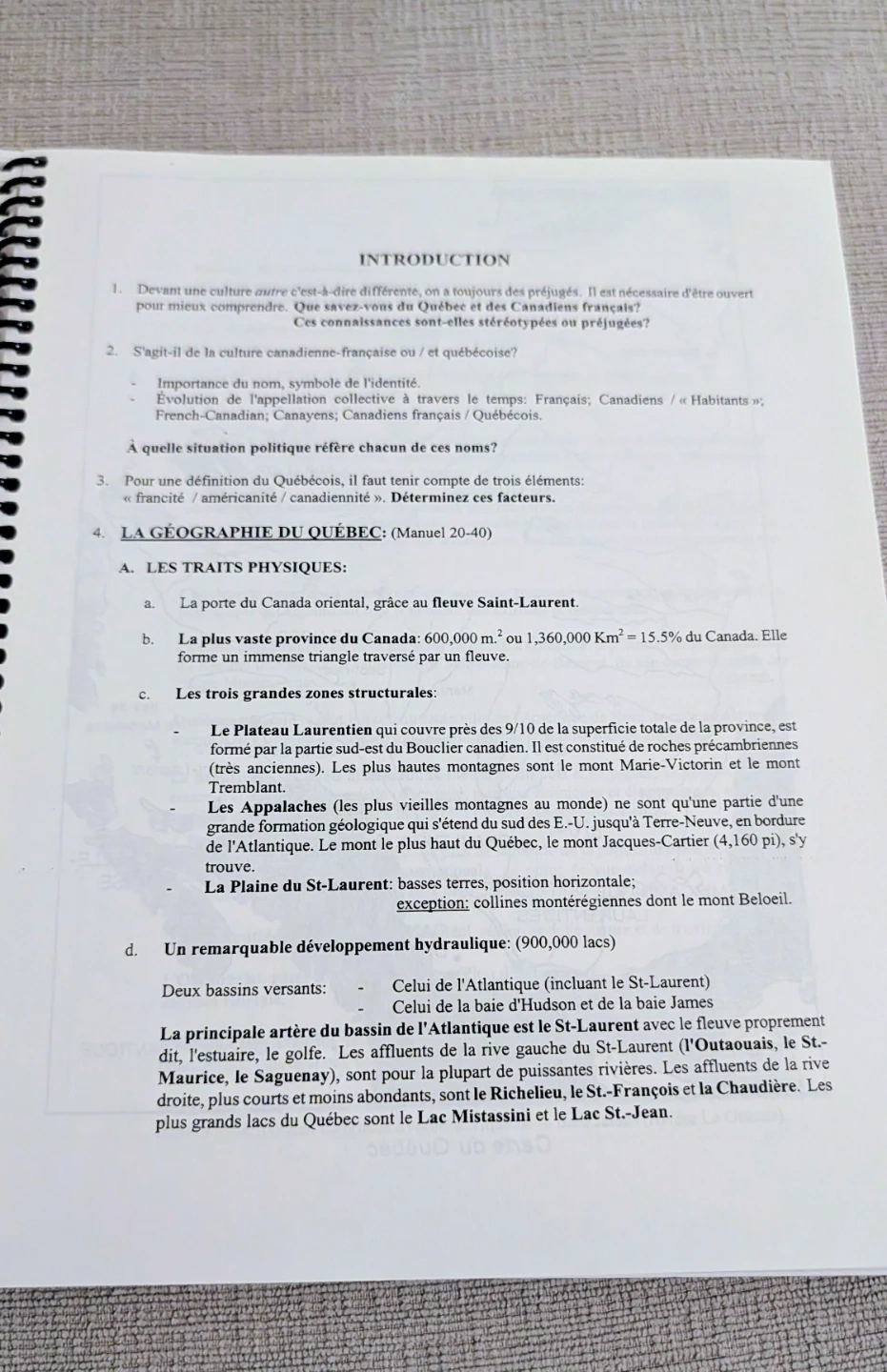 This is a guide for the FR 236 course on Quebec culture from 1534 to 1900. It covers physical geography and structural zones of the province. Includes information on the St. Lawrence River, Appalachians, and La Plaine du St-Laurent.