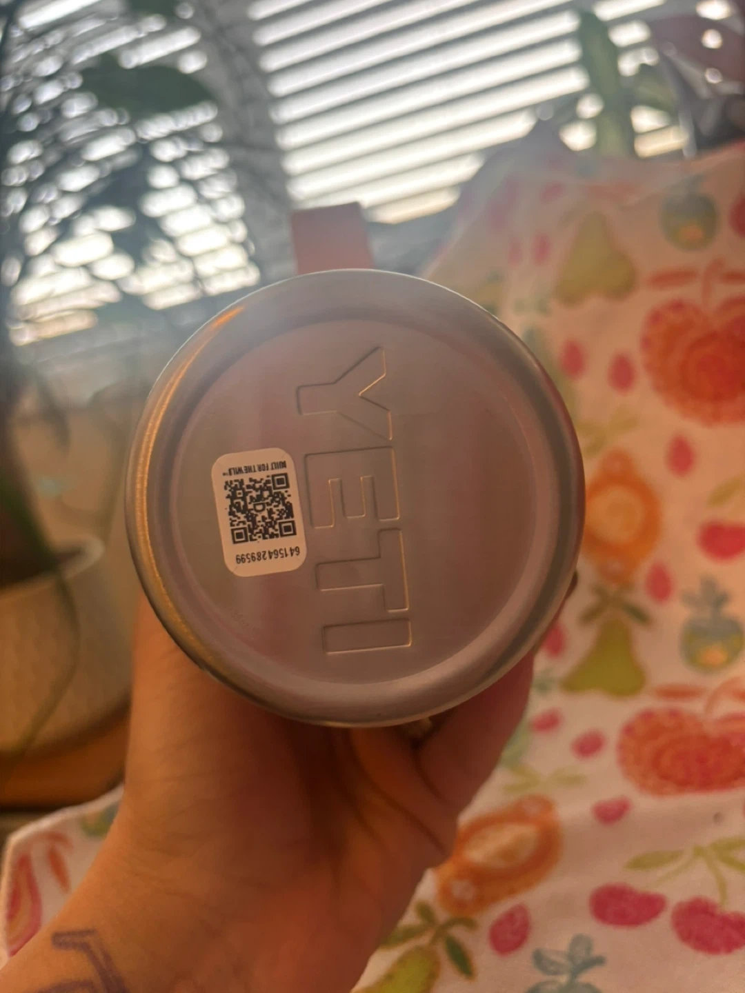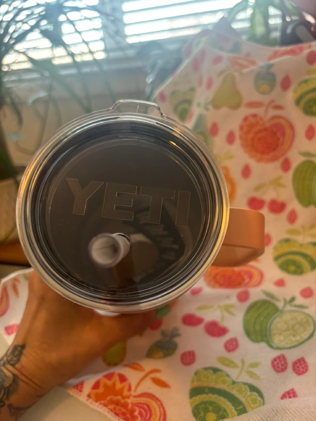 This is a Yeti Rambler tumbler, 30 oz capacity, with a handle and straw lid.
