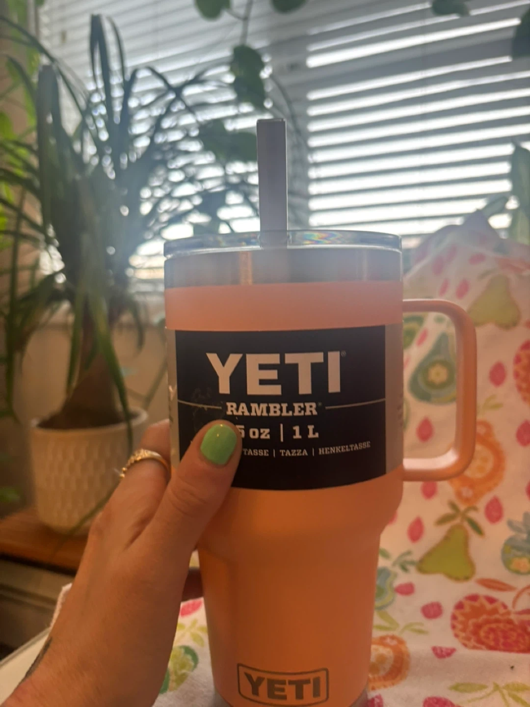 Yeti Rambler Tumbler 30 oz with Handle and Straw Lid - Peach