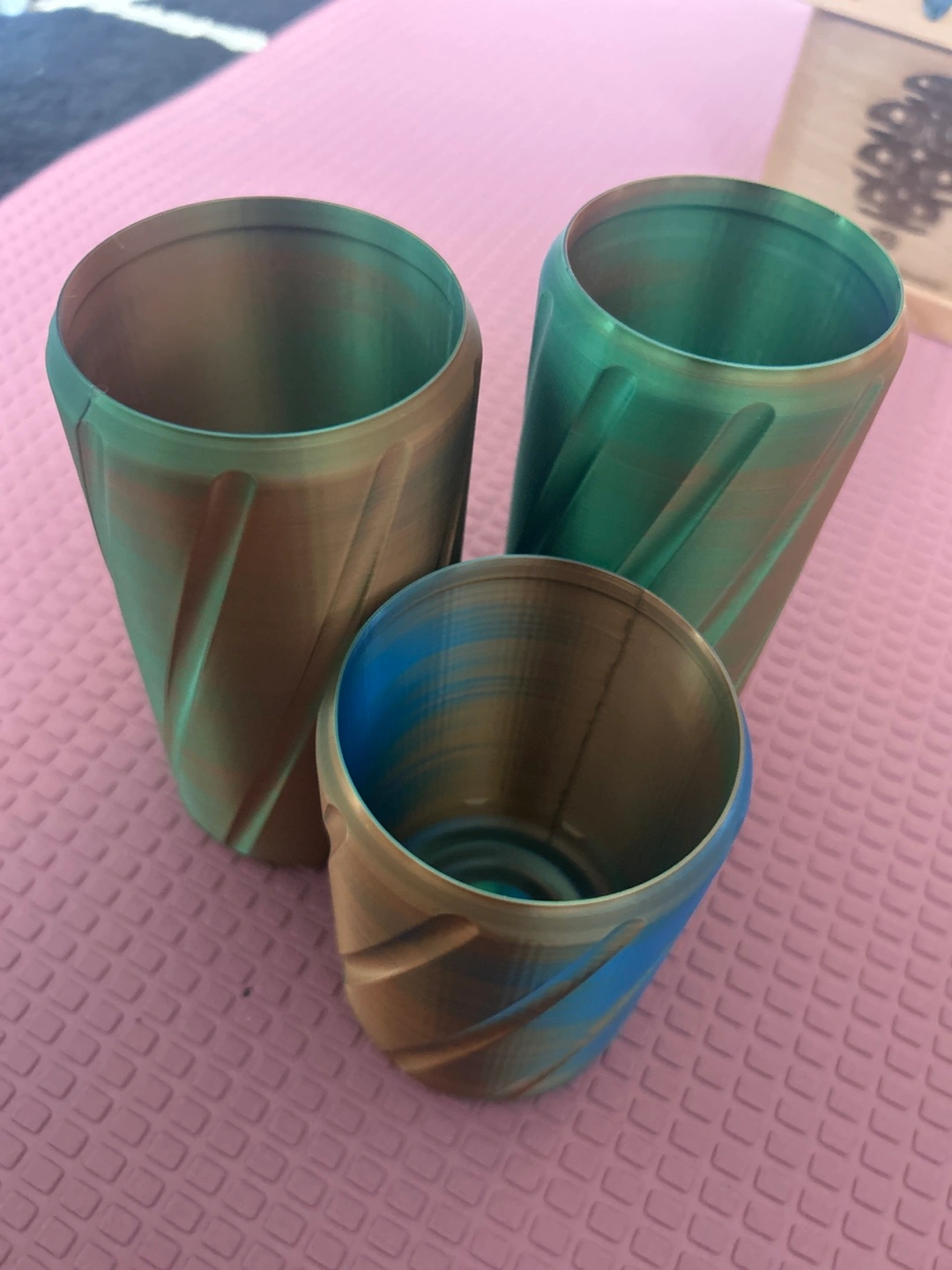 97Offering a set of three 3D printed drink cozies! Fits a regular can, tall can, and coolers!