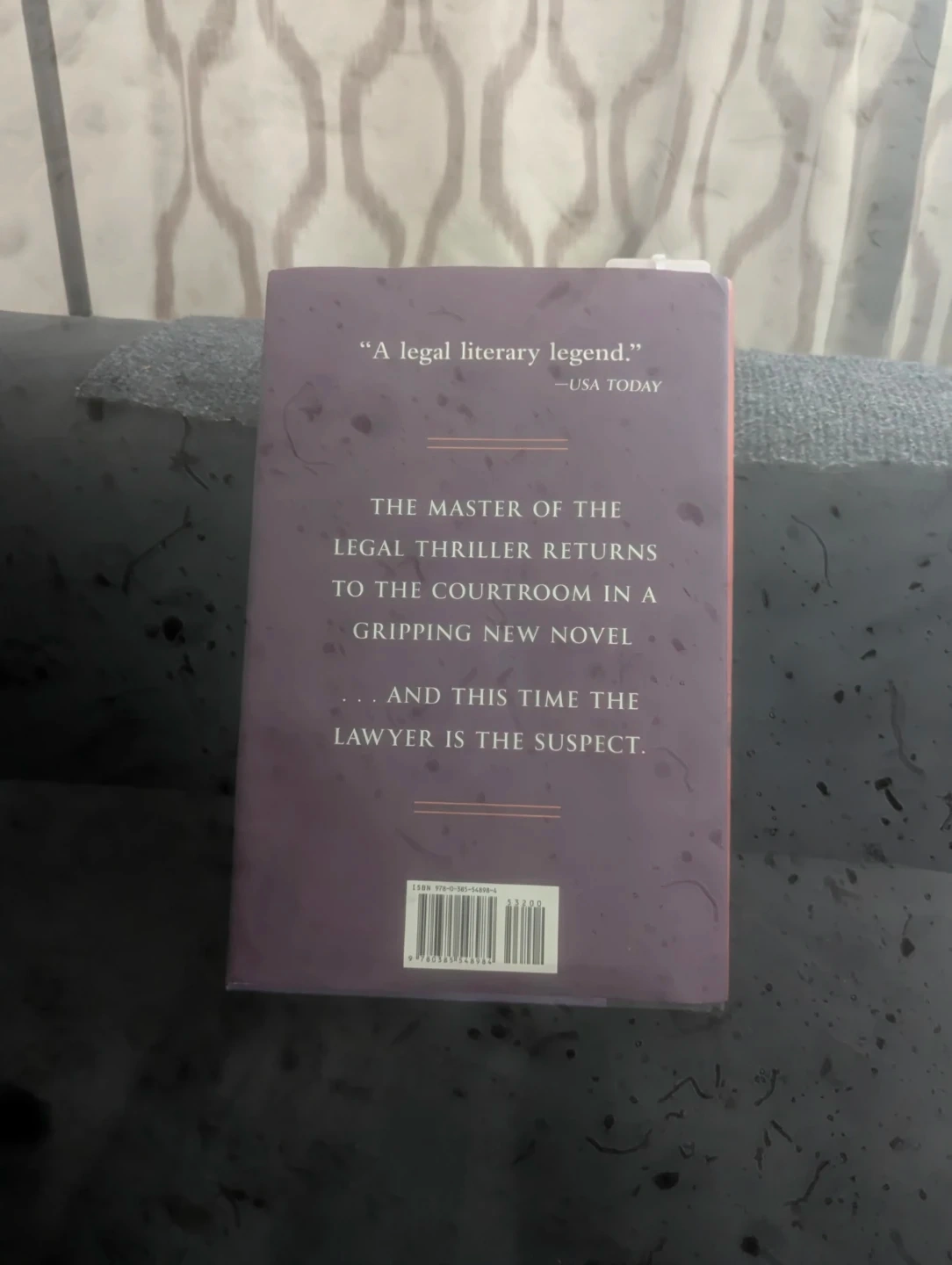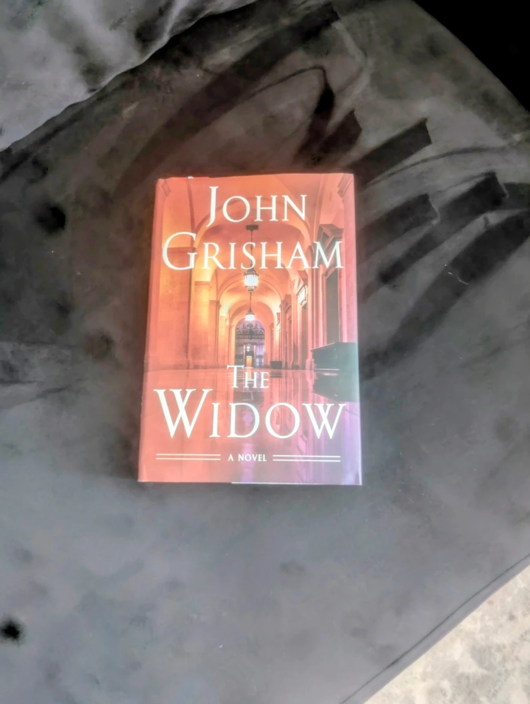 This is John Grisham's novel, The Widow. It's a gripping new legal thriller. The book is about a lawyer who is also the suspect.