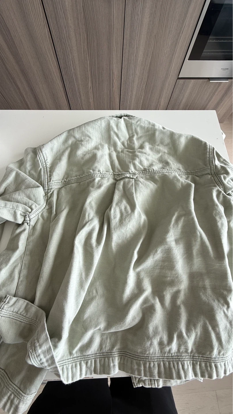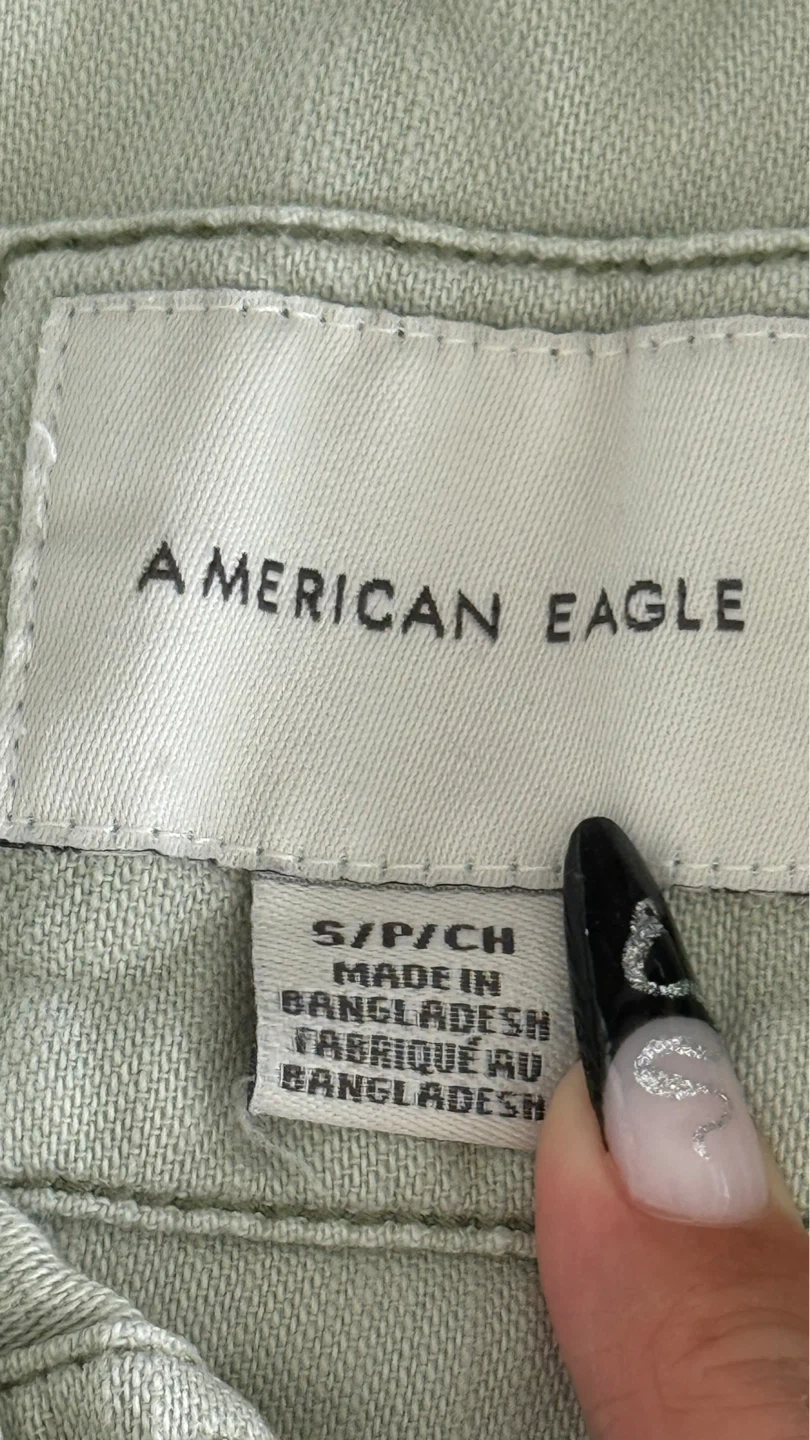 This American Eagle shirt jacket comes in a light green colour. It's a size S/P CH. Features two chest pockets with button closures.