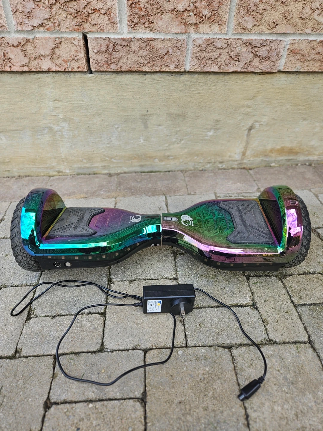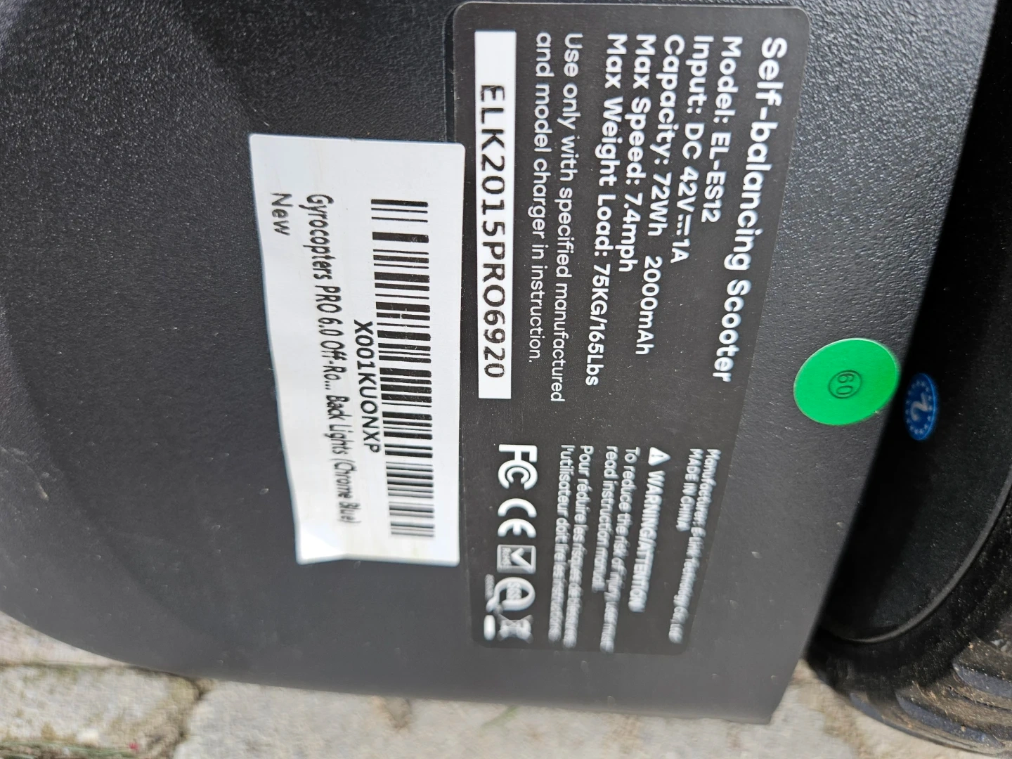 This Gyrocopters Pro 6.0 self-balancing scooter is new. It's a self-balancing scooter with LED lights and Blutooth speakers. Max weight load is 75KG/165lbs. Includes charger and carrying bag. Used less than 5 times. 45Volt battery. Price is for each unit.