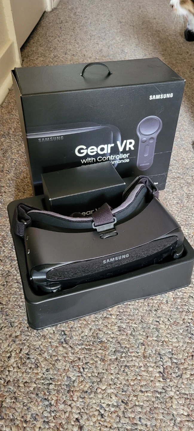 Selling a Samsung Gear VR with Controller, model number SM-R324. It comes with the original box and all included components. A great way to experience virtual reality!🥕need samsung phone to make it work