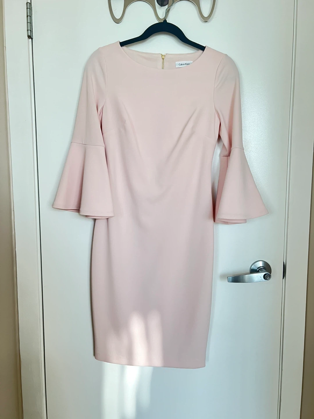 Selling a beautiful Calvin Klein dress in a lovely shade of pink! It features elegant bell sleeves and is a size 2. I wore this drees only one time for photoshoot. Perfect for a special occasion or a stylish day out.