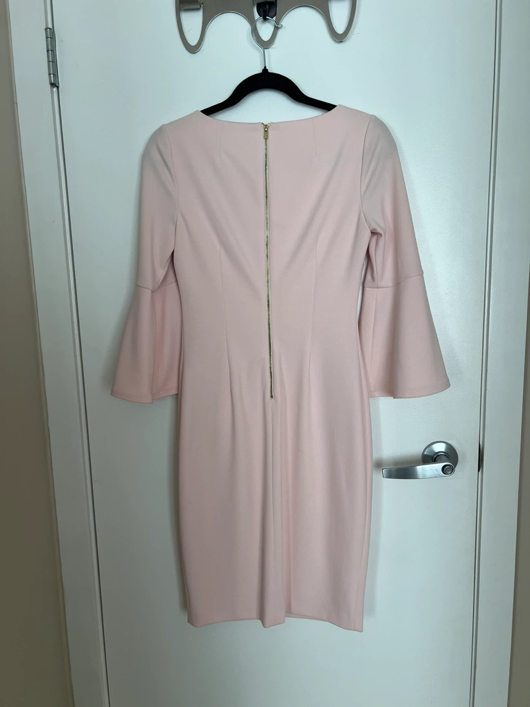 Selling a beautiful Calvin Klein dress in a lovely shade of pink! It features elegant bell sleeves and is a size 2. I wore this drees only one time for photoshoot. Perfect for a special occasion or a stylish day out.