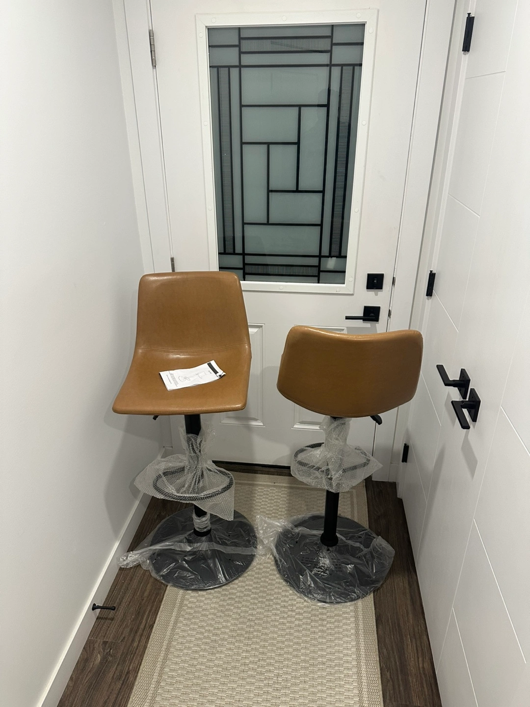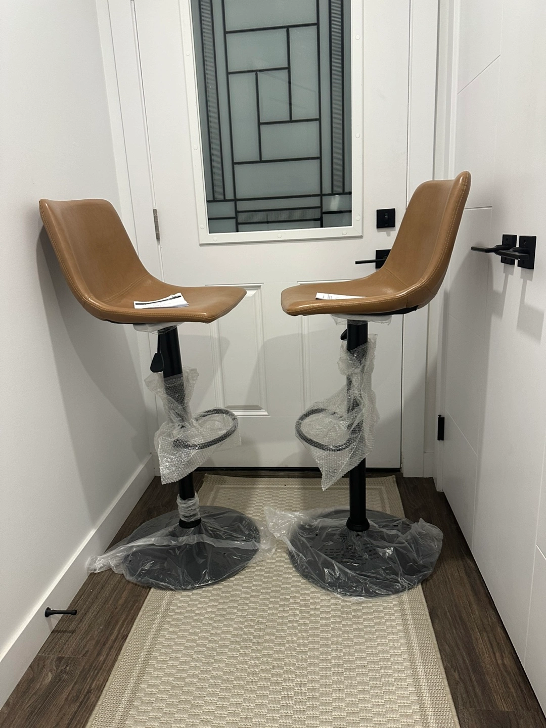 I’m Selling a brand new set of 2 modern swivel bar stools, perfect for your kitchen island, bar area, or dining space. These stylish stools combine comfort and elegance with a sleek, contemporary design.