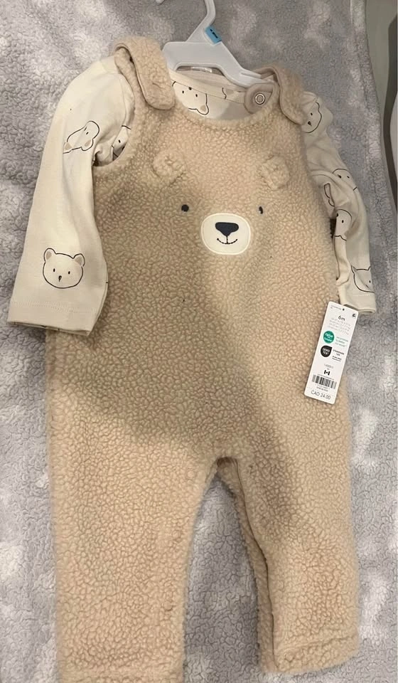 Selling a new Carter's "Baby Boy 2-Piece Bear Sherpa Long-Sleeve Overall Set" for 6 months. Asking $12 as it didn’t fit my baby. Condo pickup at Dundas & Hurontario intersection. Smoke-free, pet-free, illness-free home.