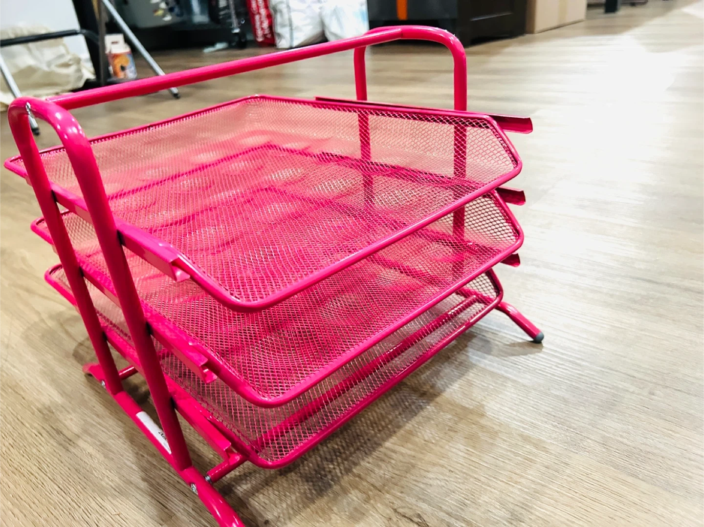 Pink 3-Tier Mesh Desk Organizer Tray