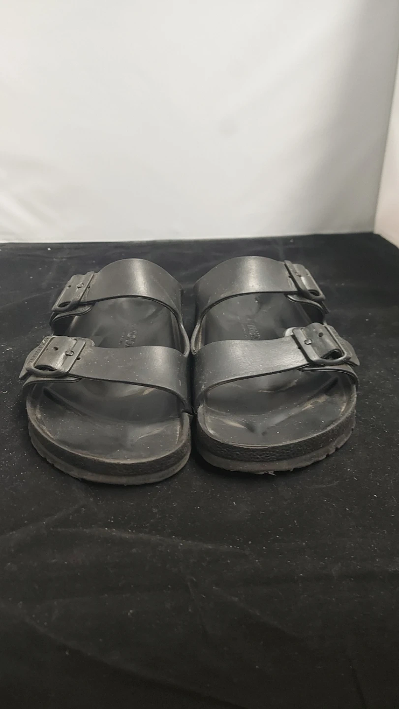 These are made from EVA material for comfort and durability in the material. They feature two adjustable straps for a secure fit. Great for casual wear on warm days! Pre owned & open to negotiate.