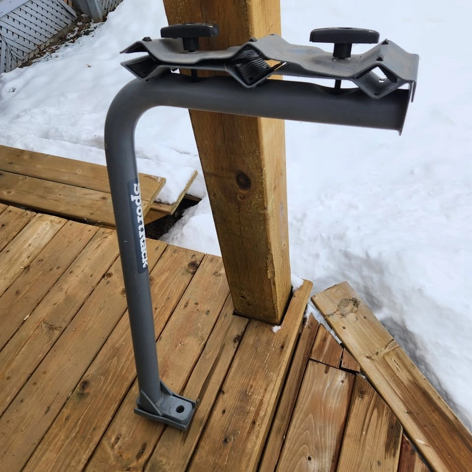 This SportRack Pathway hitch-mount bike carrier is an affordable solution that uses your existing towing components. It mounts to your tow ball and tow ball mount for use with hitch receiver openings. Bikes attach easily and rubber padding protects their finish. It accommodates 1-2 bikes, including race, mountain, and touring styles, with top tube diameters of 2.5" (6.3 cm) or less. Maximum capacity is 90 lbs (40 kg). Constructed from heavy-duty steel with a rust- and corrosion-resistant powder coating. Pickup and cash only in St. Catharines near Western Hill area.