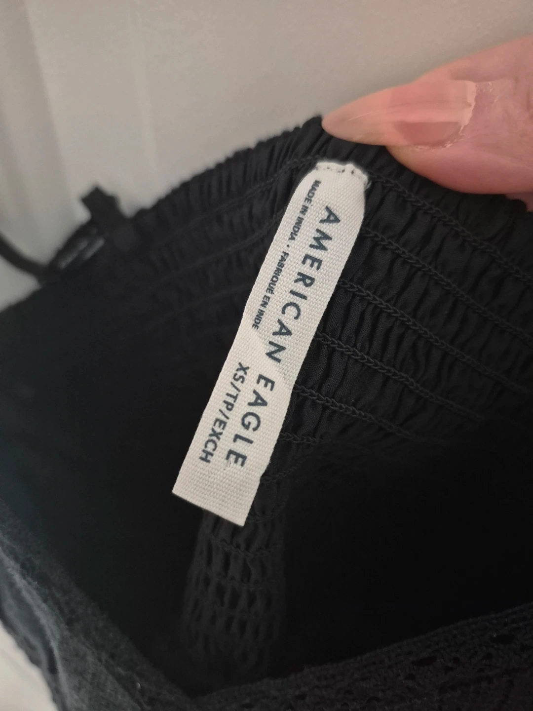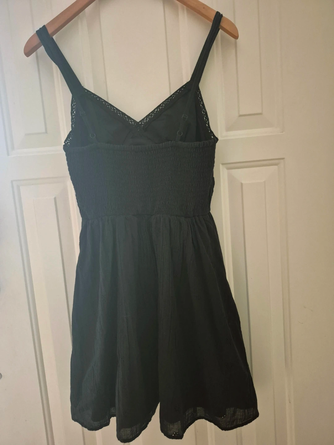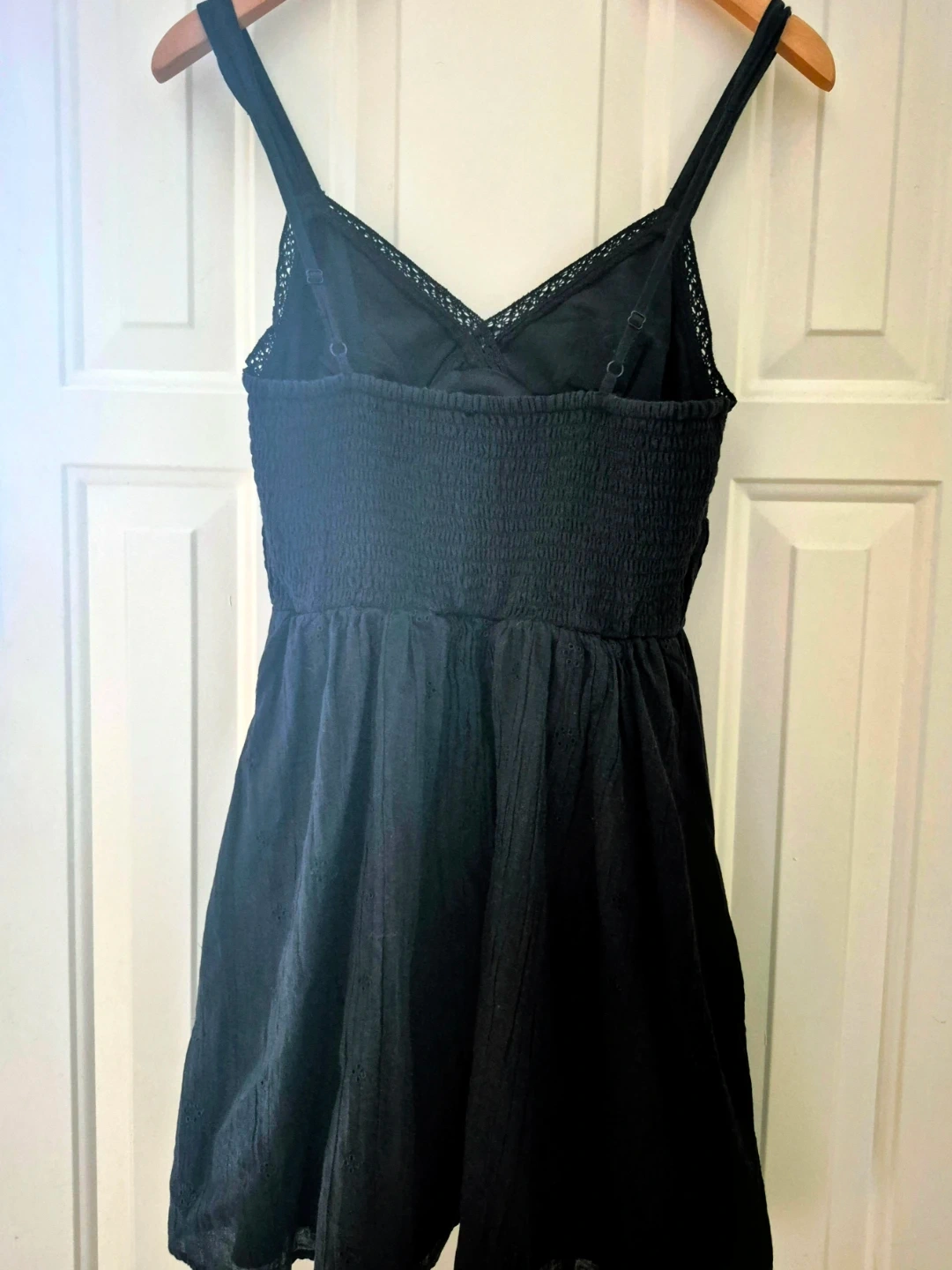 Cute black sundress with lace trim detailing! It's perfect for a casual summer day. The dress has adjustable straps and a comfortable fit.