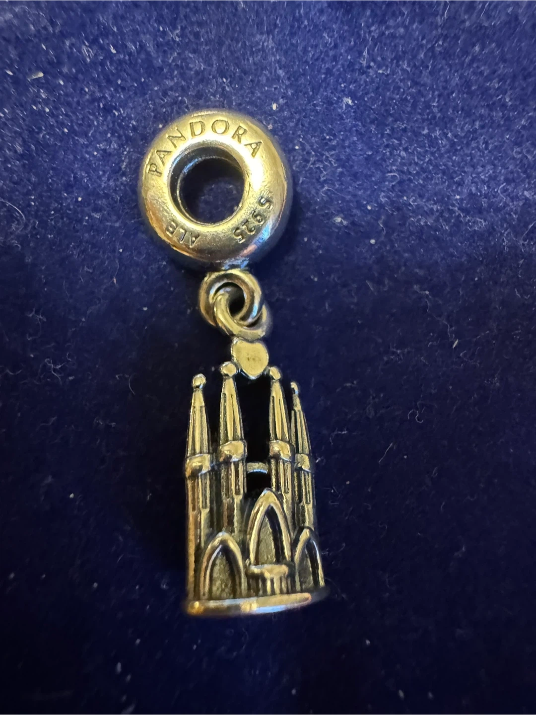 Authentic Pandora sterling silver charm featuring the Sagrada Familia. Stamped with ALE and S925. Great for adding a travel-inspired touch to your bracelet!