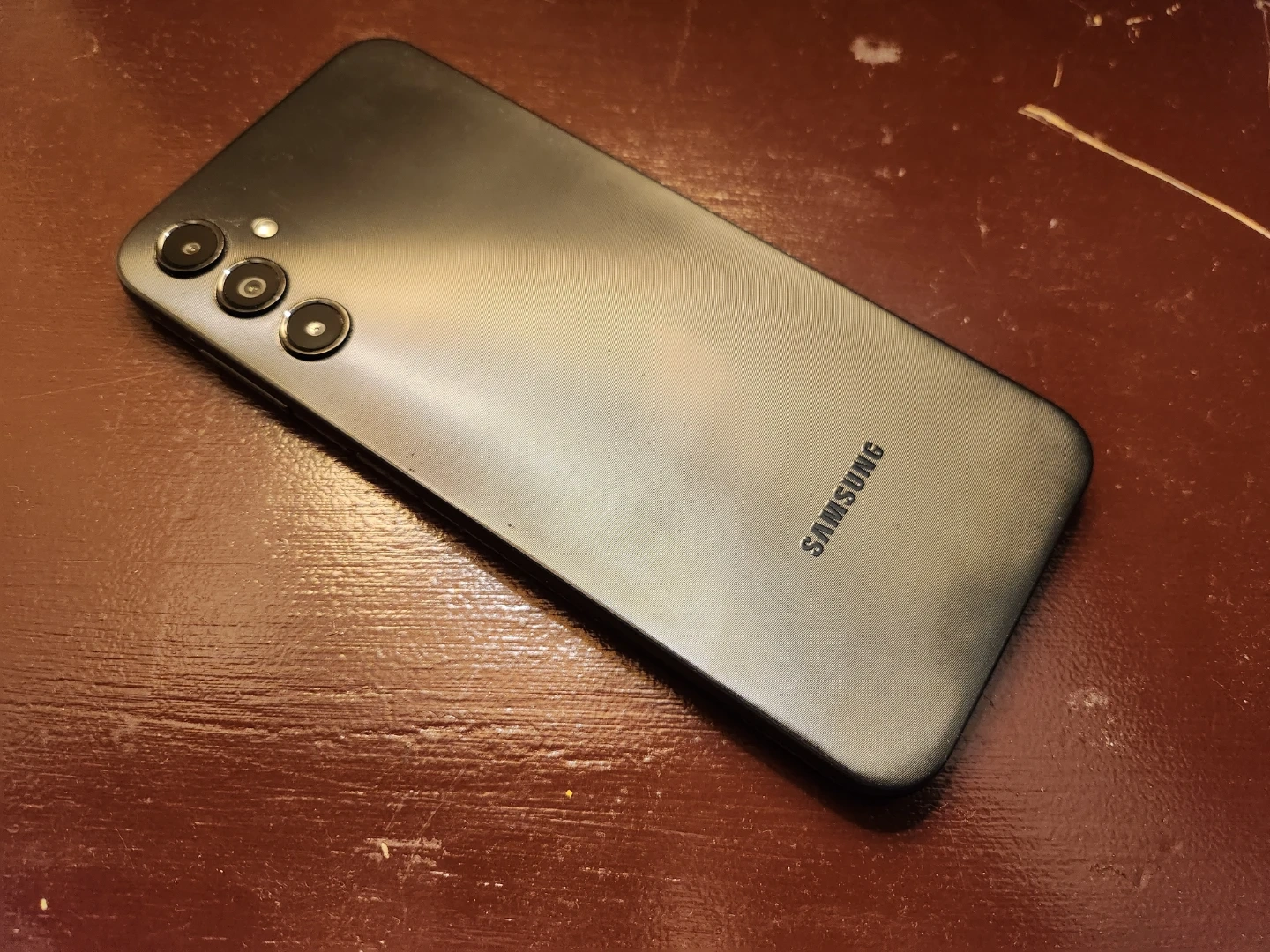 Black Samsung smartphone with a 50 megapixel triple camera system. It features a large 6.6 inch display and has no scratches on the screen. Phone is factory reset and ready to be set up by new user.