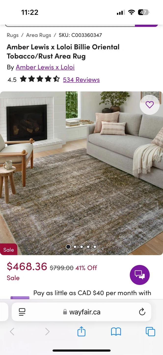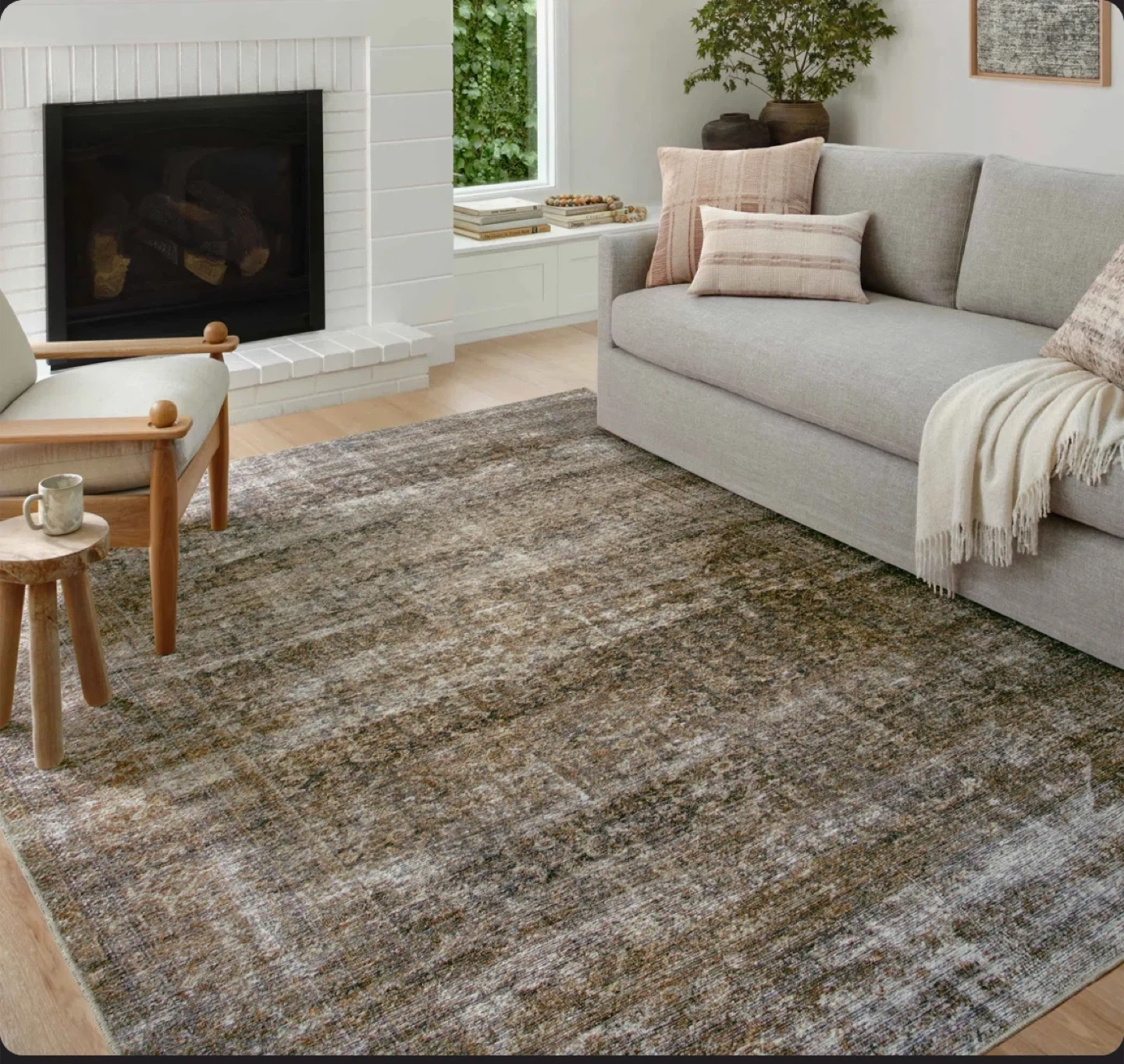 Amber Lewis x Loloi Billie Oriental Area Rug in Tobacco/Rust. This rug has a distressed, vintage look. It's a lovely addition to any living space!