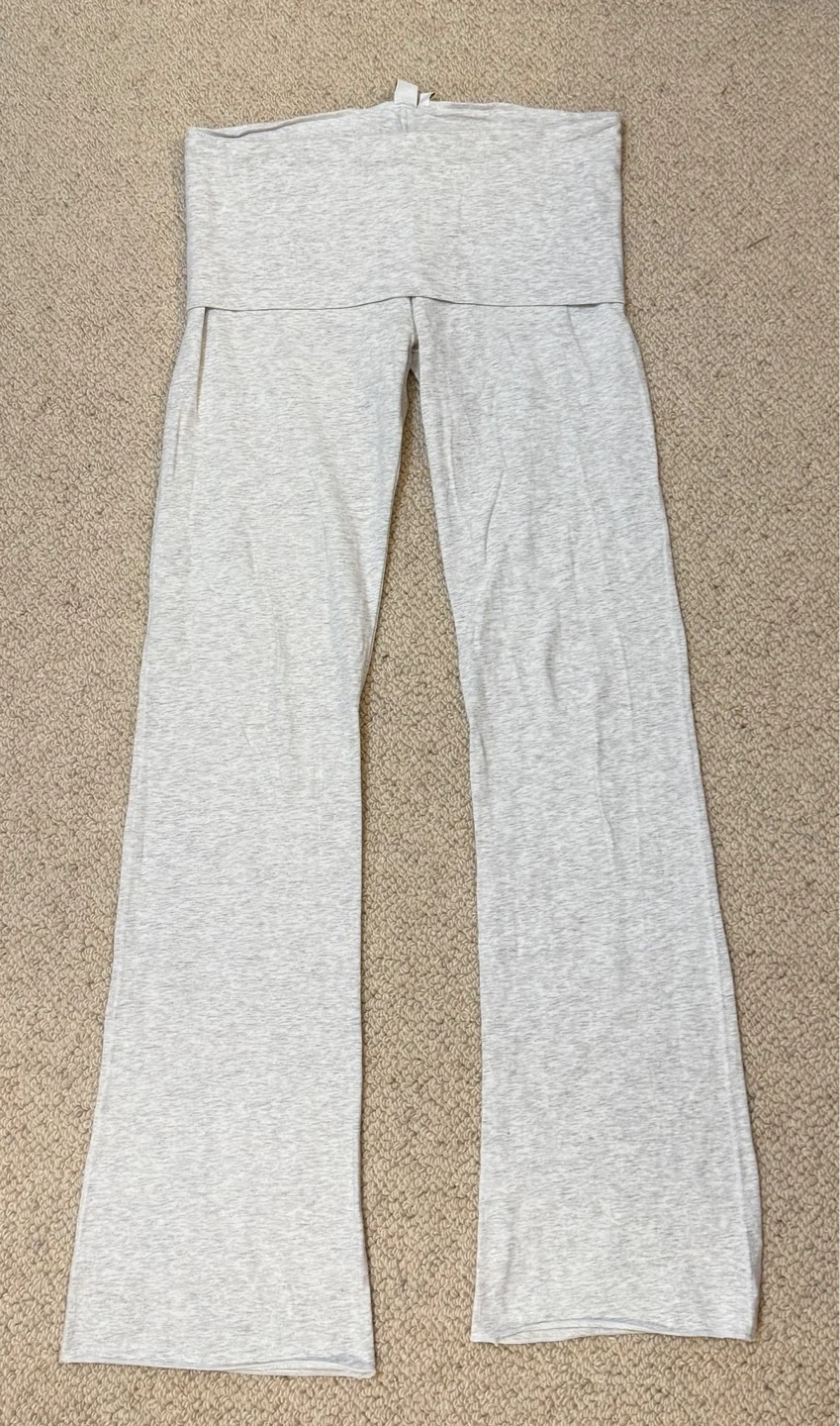 Comfy lounge pants from Harlow Low. Fold-over waist design. Grey heathered fabric. Size medium.