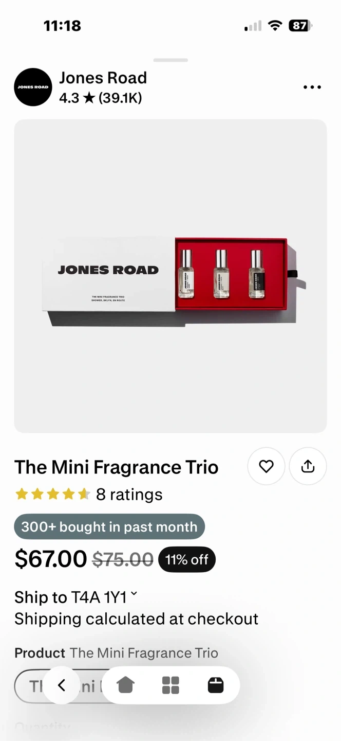 Three mini fragrances from Jones Road in convenient spray bottles. Includes BKLYN, EN ROUTE, and SHOWER scents. It's perfect for trying out new perfumes or for travel!