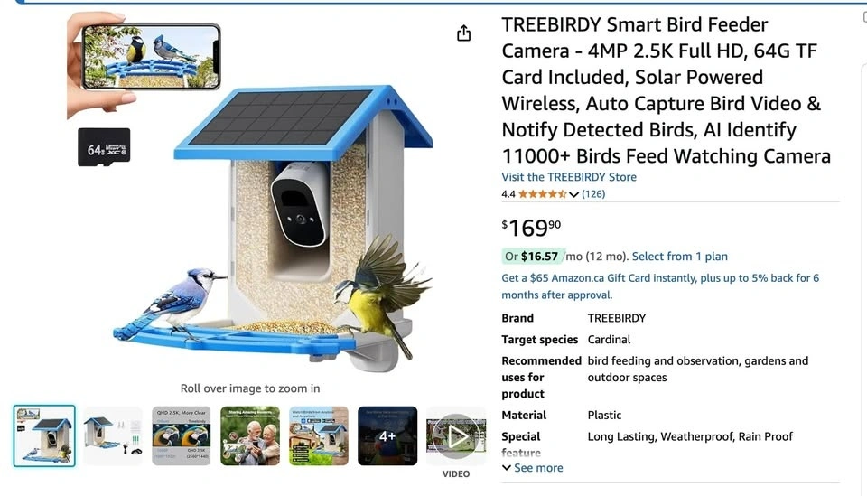 Treebirdy Smart Bird Feeder Camera – 4MP 2.5K HD + Solar Powered