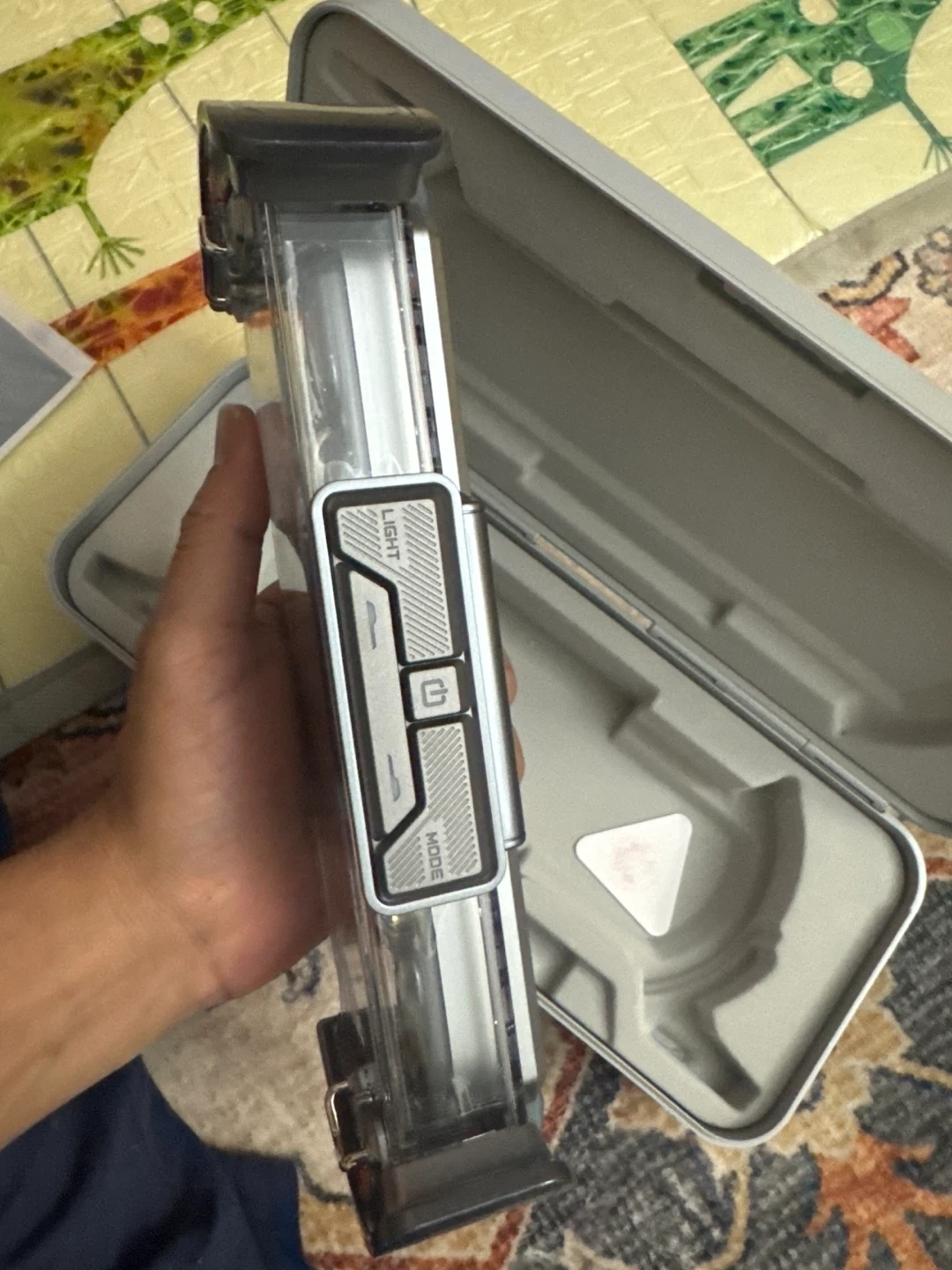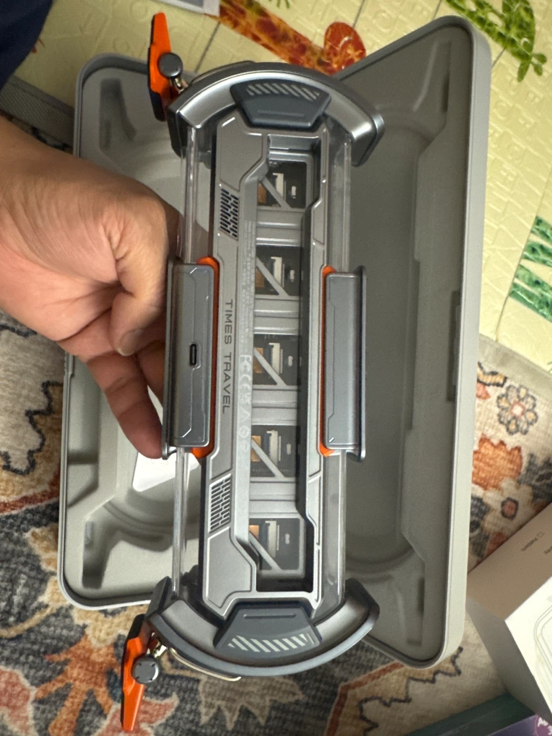 This is the Times Gate Cyberpunk Decor item. It's silver and designed for gaming rooms or offices. It measures 11 x 4.5 x 2 inches.