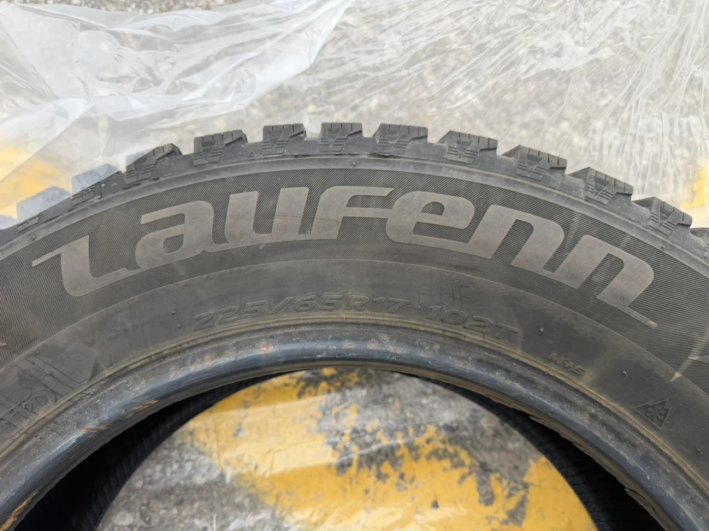 Set of four Laufenn 225/65R17 102T tires. These are winter tires designed for cold weather conditions. They're sold as a package and are ready for installation.