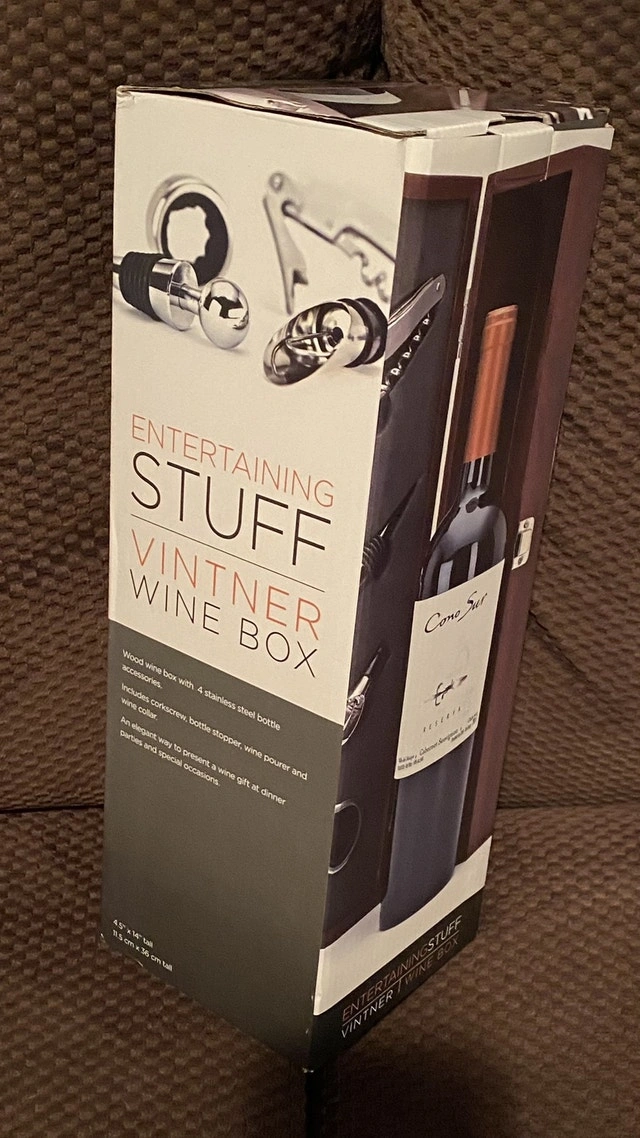 Rosewood wine box with accessories. Brand new and in the original packaging. Retails for $20. Offering it for $10. (Wine not included!)