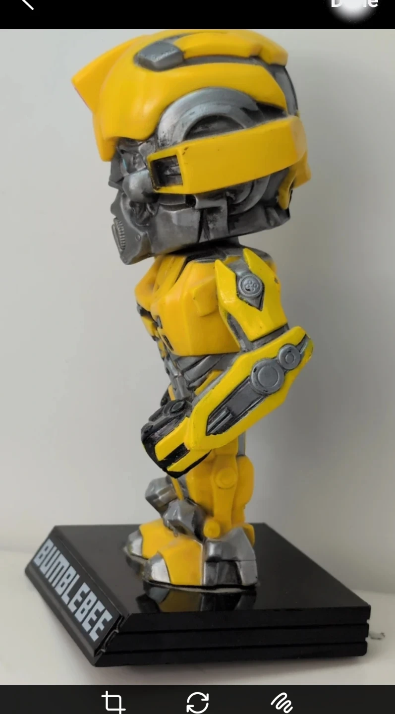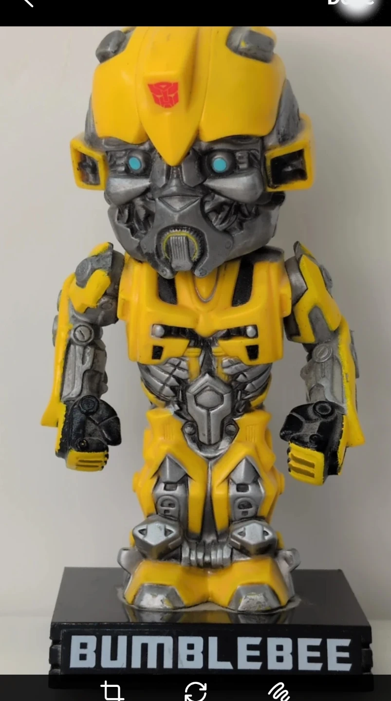 This is a Funko bobblehead of Bumblebee from the Transformers movie franchise. It's from 2009 and features the iconic yellow and silver robot design. The bobblehead sits on a black display base with the Transformers logo and Bumblebee's name. It's a great collectible for fans!