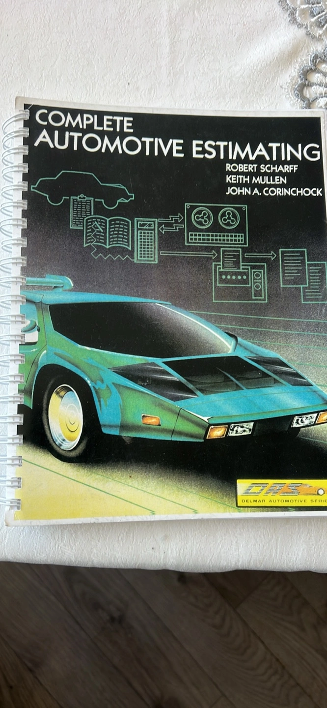 This book is titled Complete Automotive Estimating. It's authored by Robert Scharff, Keith Mullen, and John A. Corinchock. It's part of the Delmar Automotive Series. Listed for $159.59